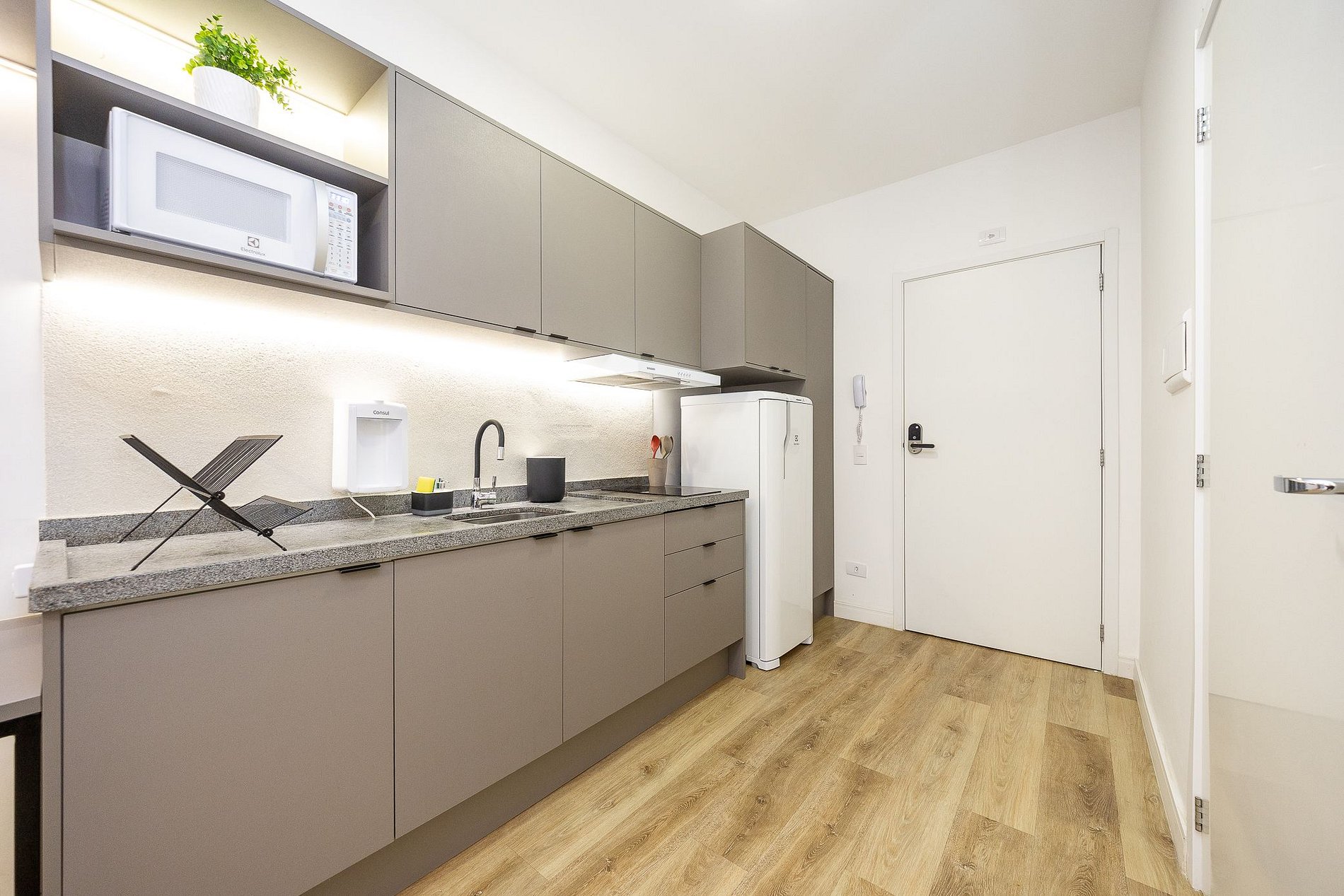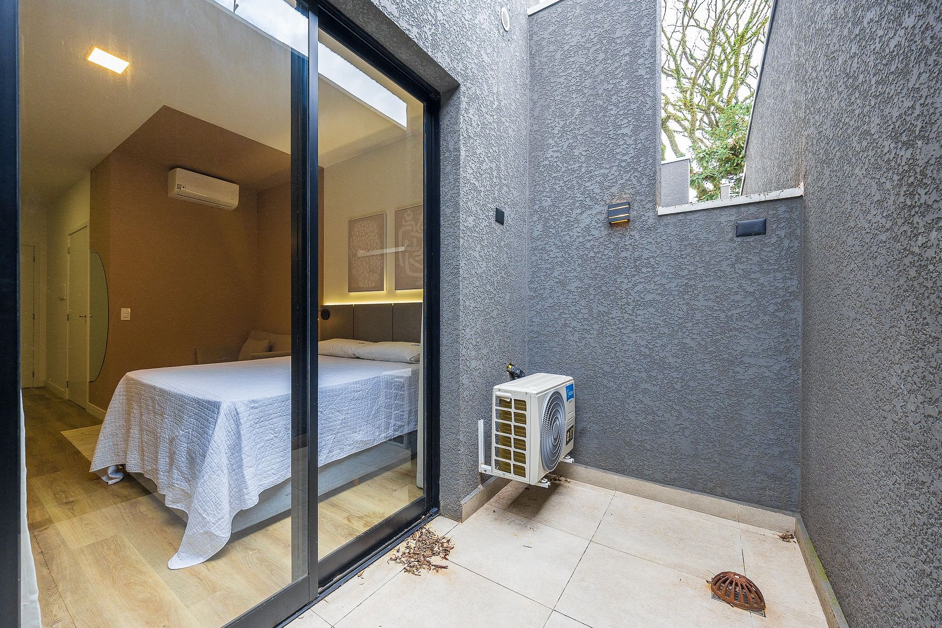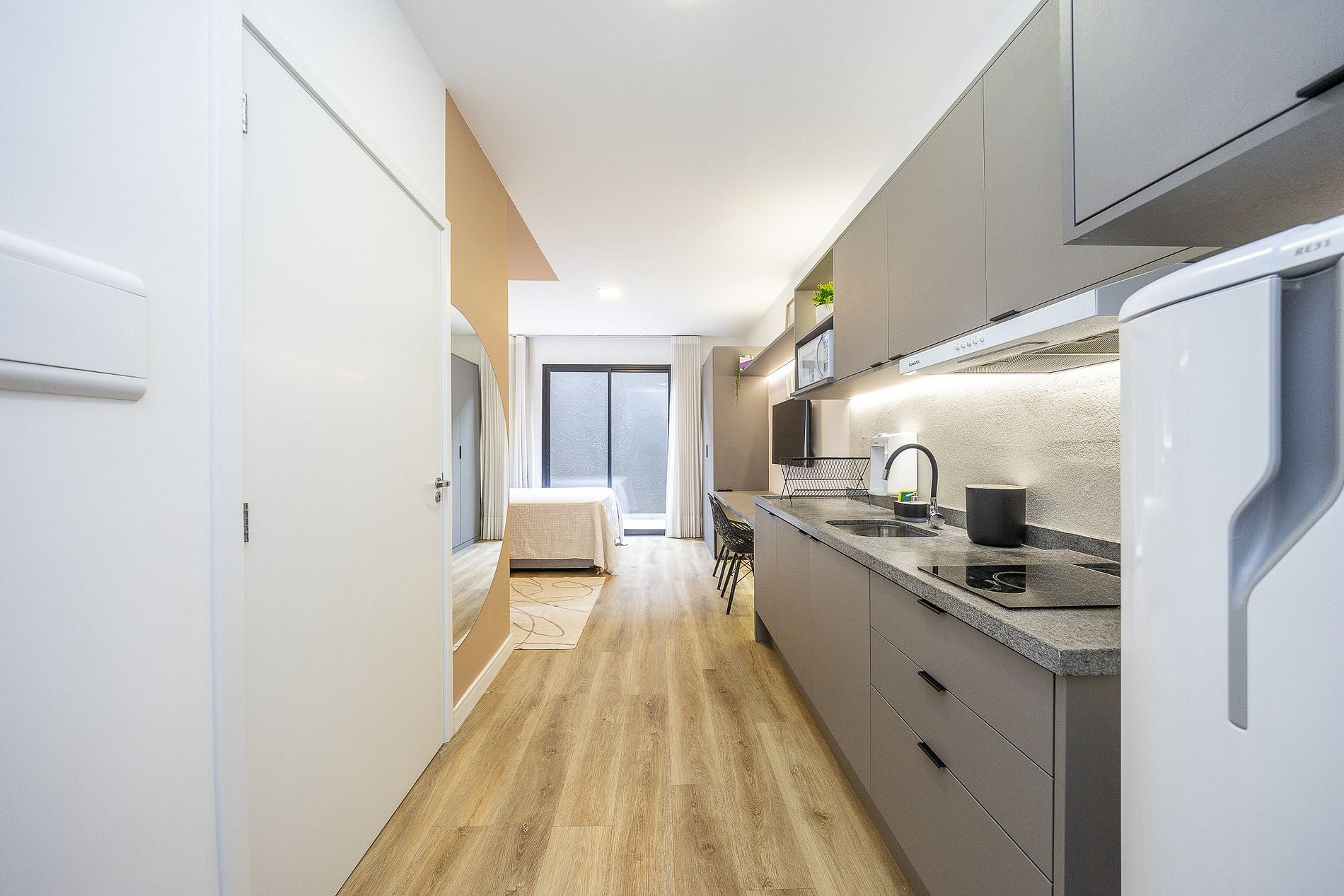 Sobre o apartamento: Studio totalmente mobiliado, no 1º andar, em excelente localização no Rebouças em Curitiba/PR. Finamente decorado, com aproximadamente 27m, conta com: Wi-Fi incluído, Aquecimento central, Móveis sob medida, Cama box casal, Smart TV, Fogão de indução de 2 bocas, micro-ondas, Jogo de panelas, Talheres, Jogo de facas, Louças, Utensílios para cozinha. Região com facilidades e comodidades. *Roupas de cama, mesa e banho não estão incluídas. O que está incluído no pacote mensal*: Aluguel, condomínio, água, gás, internet e energia eléctrica. O pacote mensal é calculado com base no consumo médio dos meses anteriores e consumos muito elevados poderão gerar cobrança adicional.