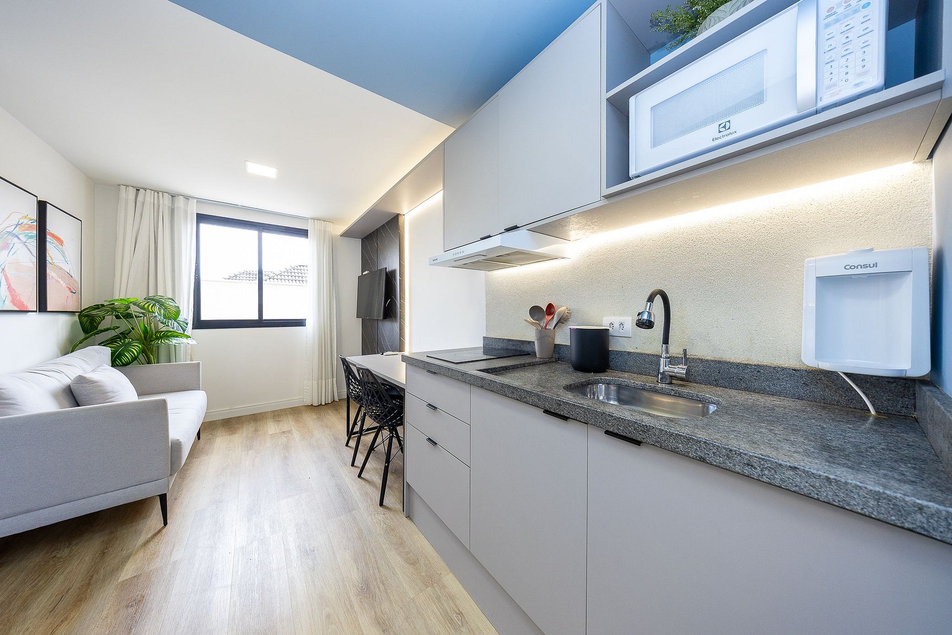 Sobre o apartamento: Studio totalmente mobiliado, no 2º andar, em excelente localização no Rebouças em Curitiba/PR. Finamente decorado, com aproximadamente 30m, conta com: Wi-Fi incluído, Aquecimento central, Móveis sob medida, Cama box casal, Smart TV, Fogão de indução de 2 bocas, micro-ondas, Jogo de panelas, Talheres, Jogo de facas, Louças, Utensílios para cozinha. Região com facilidades e comodidades. *Roupas de cama, mesa e banho não estão incluídas. O que está incluído no pacote mensal*: Aluguel, condomínio, água, gás, internet e energia eléctrica. O pacote mensal é calculado com base no consumo médio dos meses anteriores e consumos muito elevados poderão gerar cobrança adicional.