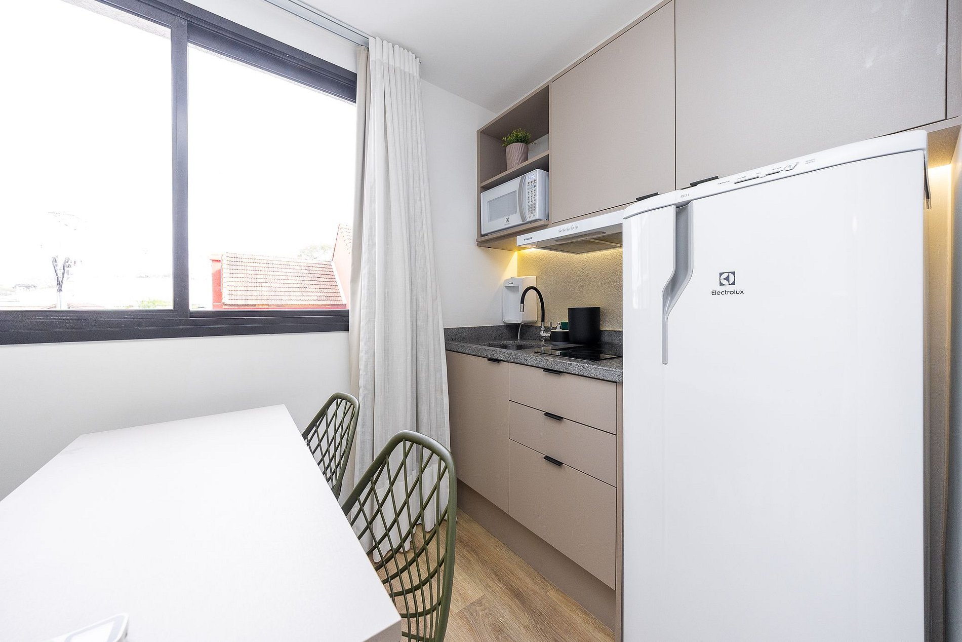 Sobre o apartamento: Studio totalmente mobiliado, no 2º andar, em excelente localização no Rebouças em Curitiba/PR. Finamente decorado, com aproximadamente 17m, conta com: Wi-Fi incluído, Aquecimento central, Móveis sob medida, Cama box casal, Smart TV, Fogão de indução de 2 bocas, micro-ondas, Jogo de panelas, Talheres, Jogo de facas, Louças, Utensílios para cozinha. Região com facilidades e comodidades. *Roupas de cama, mesa e banho não estão incluídas. O que está incluído no pacote mensal*: Aluguel, condomínio, água, gás, internet e energia eléctrica. O pacote mensal é calculado com base no consumo médio dos meses anteriores e consumos muito elevados poderão gerar cobrança adicional.