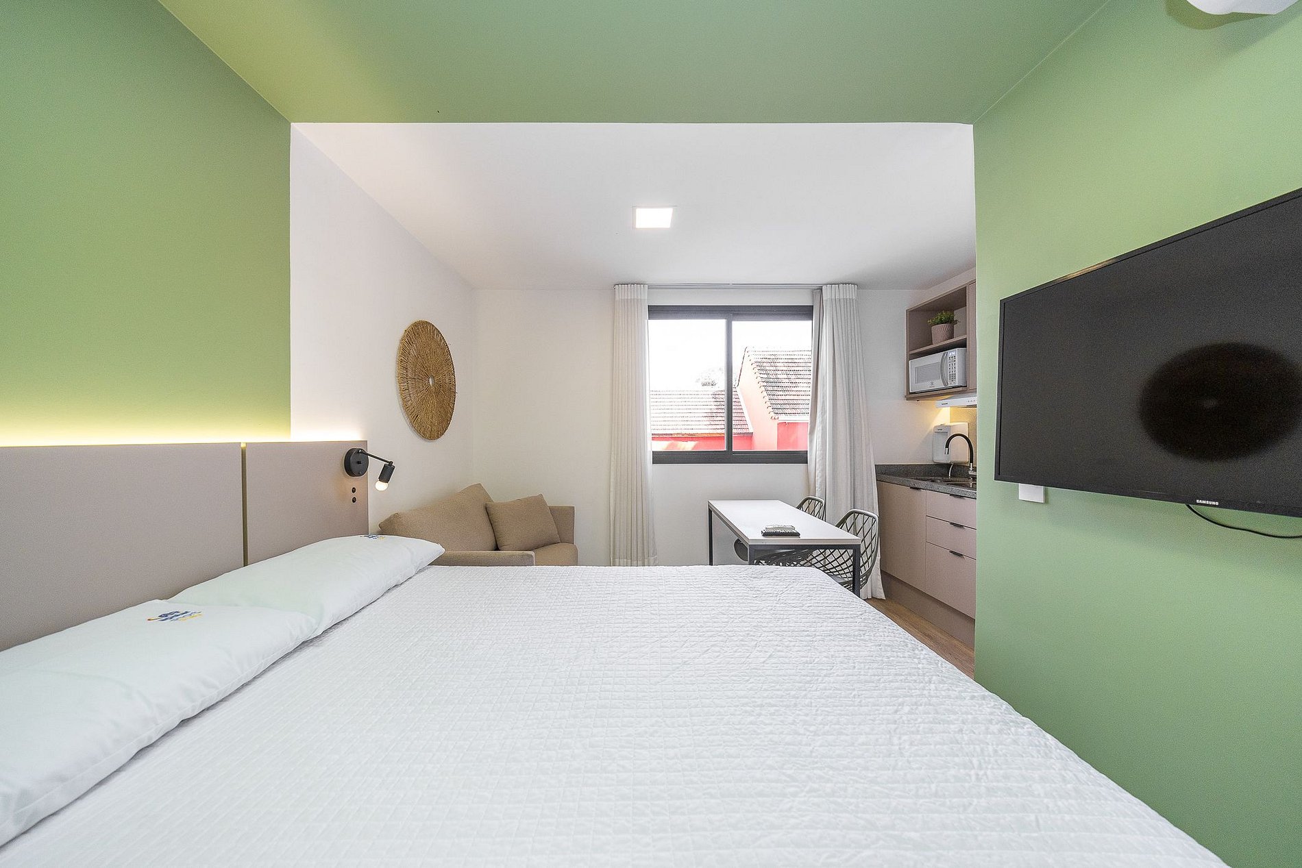 Sobre o apartamento: Studio totalmente mobiliado, no 2º andar, em excelente localização no Rebouças em Curitiba/PR. Finamente decorado, com aproximadamente 17m, conta com: Wi-Fi incluído, Aquecimento central, Móveis sob medida, Cama box casal, Smart TV, Fogão de indução de 2 bocas, micro-ondas, Jogo de panelas, Talheres, Jogo de facas, Louças, Utensílios para cozinha. Região com facilidades e comodidades. *Roupas de cama, mesa e banho não estão incluídas. O que está incluído no pacote mensal*: Aluguel, condomínio, água, gás, internet e energia eléctrica. O pacote mensal é calculado com base no consumo médio dos meses anteriores e consumos muito elevados poderão gerar cobrança adicional.
