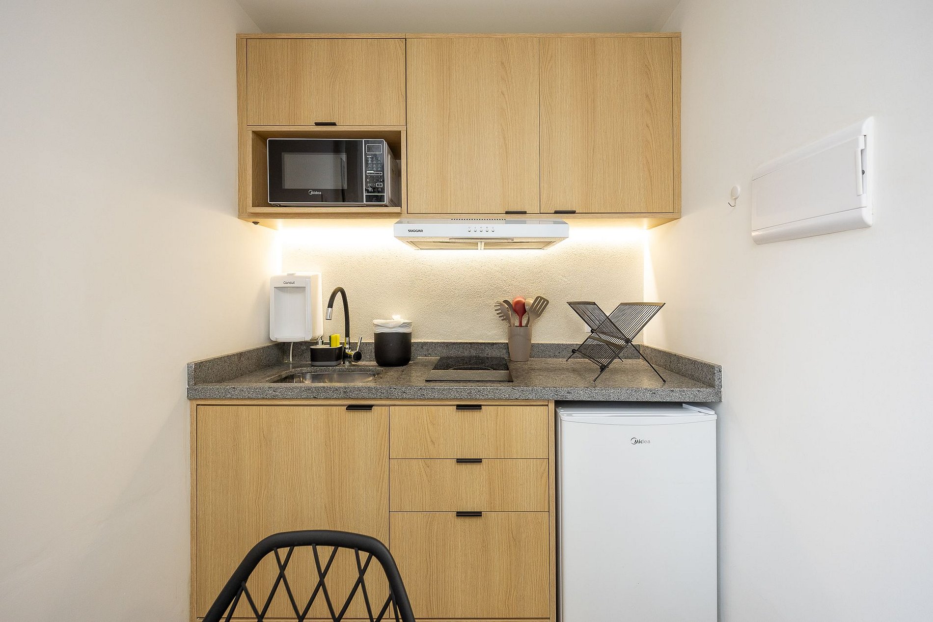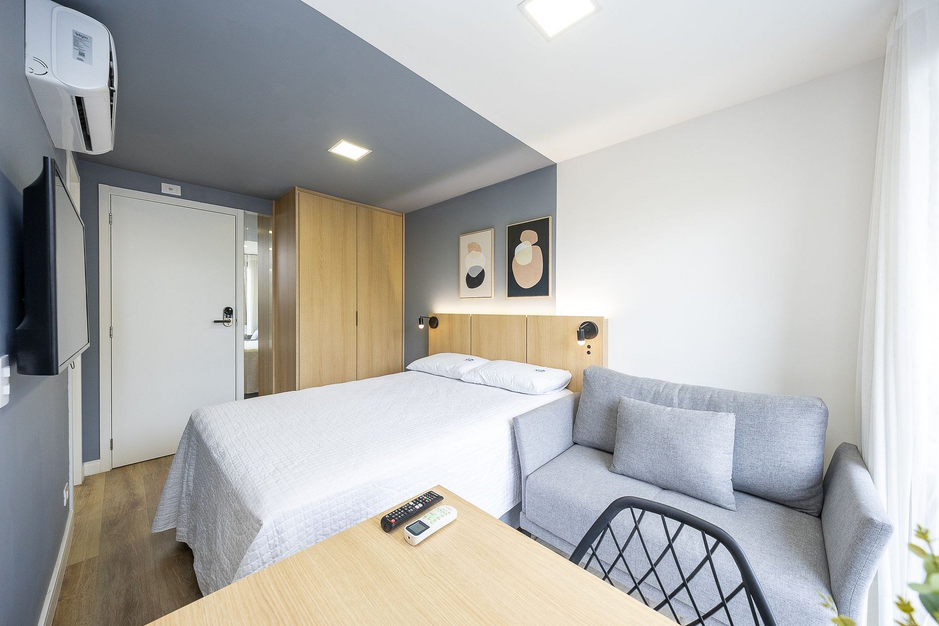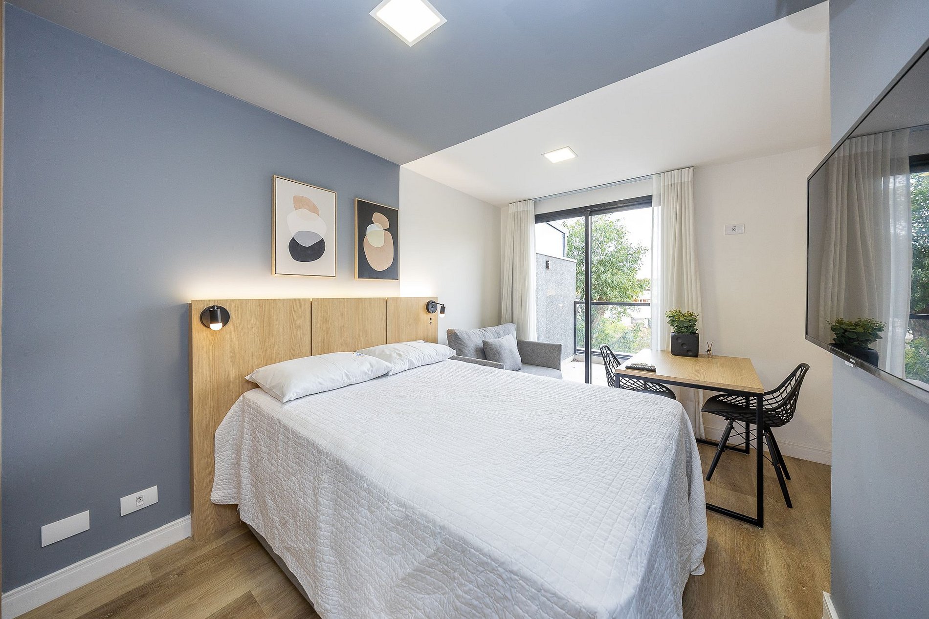 Sobre o apartamento: Studio totalmente mobiliado, no 2º andar, em excelente localização no Rebouças em Curitiba/PR. Finamente decorado, com aproximadamente 17m, conta com: Wi-Fi incluído, Aquecimento central, Móveis sob medida, Cama box casal, Smart TV, Fogão de indução de 2 bocas, micro-ondas, Jogo de panelas, Talheres, Jogo de facas, Louças, Utensílios para cozinha. Região com facilidades e comodidades. *Roupas de cama, mesa e banho não estão incluídas. O que está incluído no pacote mensal*: Aluguel, condomínio, água, gás, internet e energia eléctrica. O pacote mensal é calculado com base no consumo médio dos meses anteriores e consumos muito elevados poderão gerar cobrança adicional.