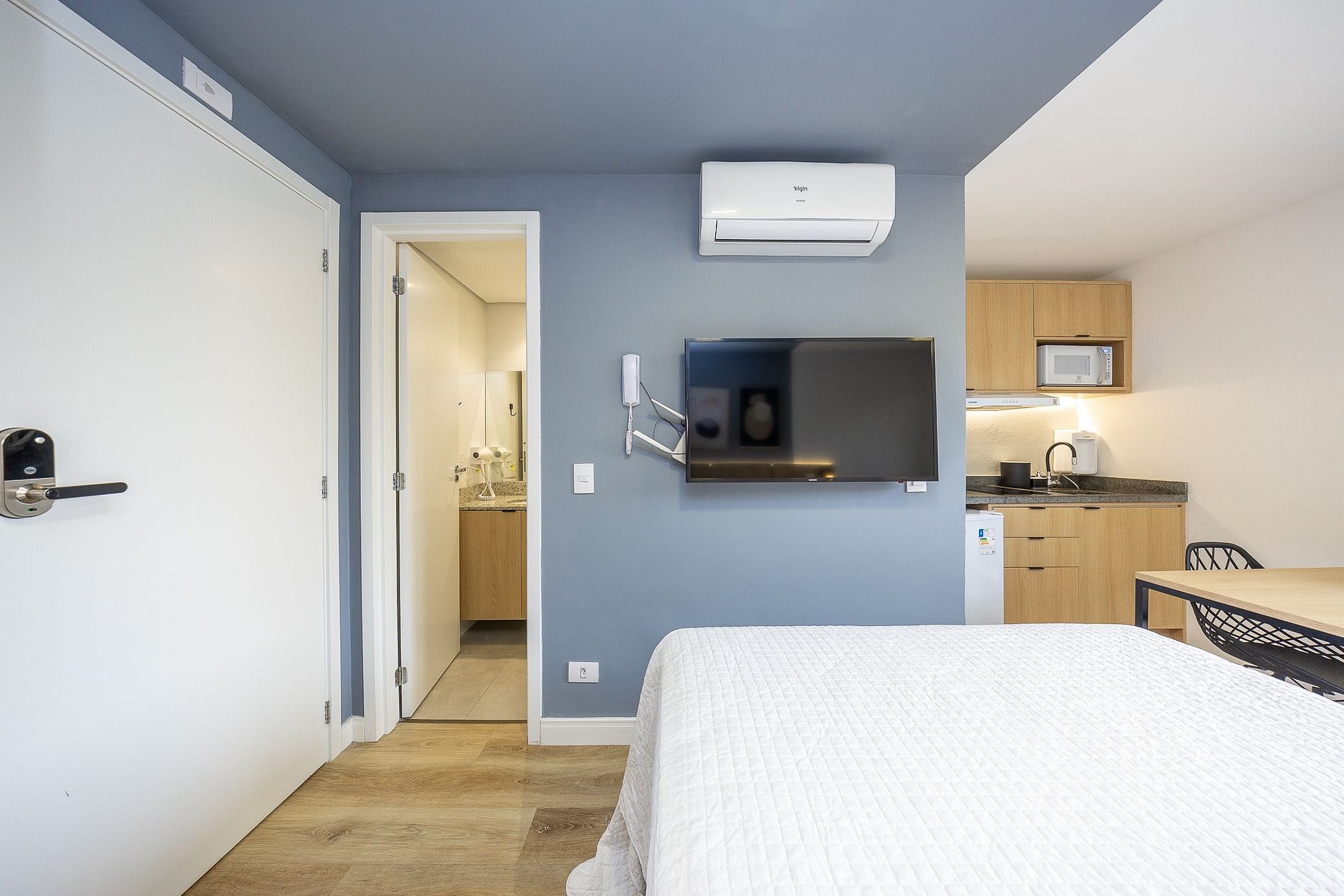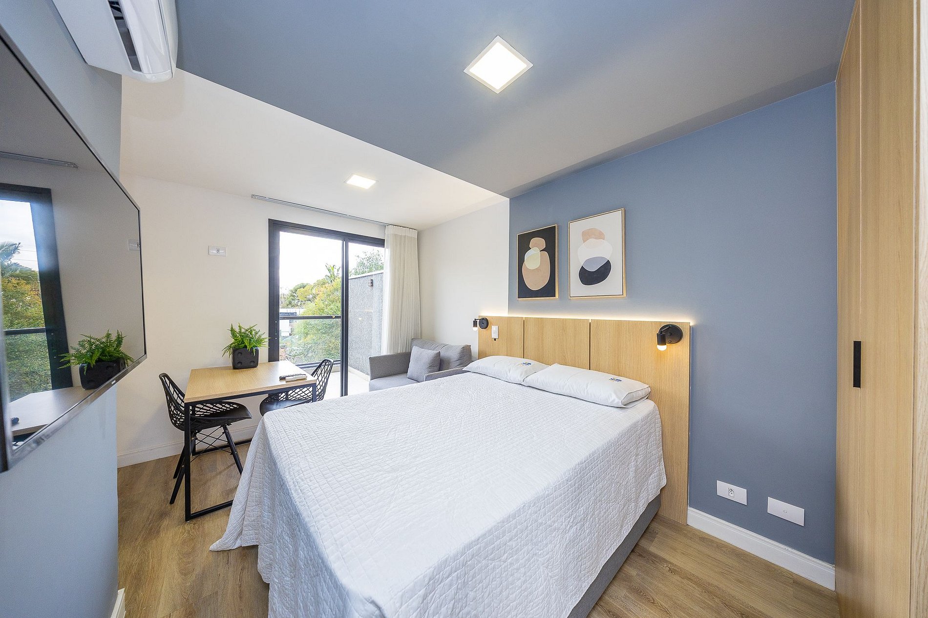 Sobre o apartamento: Studio totalmente mobiliado, no 2º andar, em excelente localização no Rebouças em Curitiba/PR. Finamente decorado, com aproximadamente 17m, conta com: Wi-Fi incluído, Aquecimento central, Móveis sob medida, Cama box casal, Smart TV, Fogão de indução de 2 bocas, micro-ondas, Jogo de panelas, Talheres, Jogo de facas, Louças, Utensílios para cozinha. Região com facilidades e comodidades. *Roupas de cama, mesa e banho não estão incluídas. O que está incluído no pacote mensal*: Aluguel, condomínio, água, gás, internet e energia eléctrica. O pacote mensal é calculado com base no consumo médio dos meses anteriores e consumos muito elevados poderão gerar cobrança adicional.