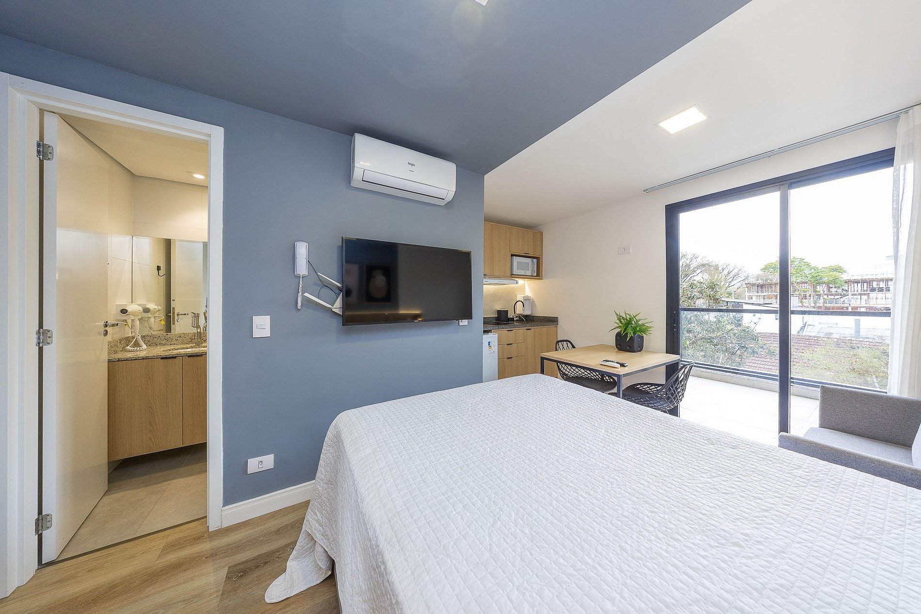 Sobre o apartamento: Studio totalmente mobiliado, no 2º andar, em excelente localização no Rebouças em Curitiba/PR. Finamente decorado, com aproximadamente 17m, conta com: Wi-Fi incluído, Aquecimento central, Móveis sob medida, Cama box casal, Smart TV, Fogão de indução de 2 bocas, micro-ondas, Jogo de panelas, Talheres, Jogo de facas, Louças, Utensílios para cozinha. Região com facilidades e comodidades. *Roupas de cama, mesa e banho não estão incluídas. O que está incluído no pacote mensal*: Aluguel, condomínio, água, gás, internet e energia eléctrica. O pacote mensal é calculado com base no consumo médio dos meses anteriores e consumos muito elevados poderão gerar cobrança adicional.