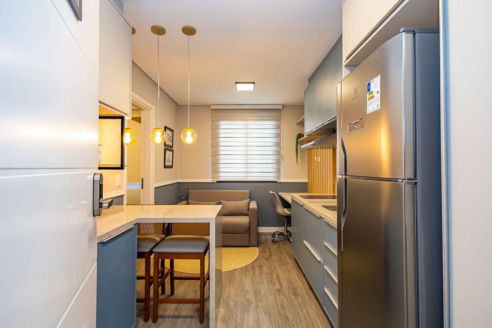 Studio totalmente mobiliado, no 14º andar, em excelente localização no centro de Curitiba/PR. Finamente decorado, com aproximadamente 30m², conta com: Wi-Fi, aquecimento a gás, móveis sob medida, cama casal, smart TV, Cadeiras, geladeira , fogão, microondas, forno elétrico, utensílios para cozinha.
