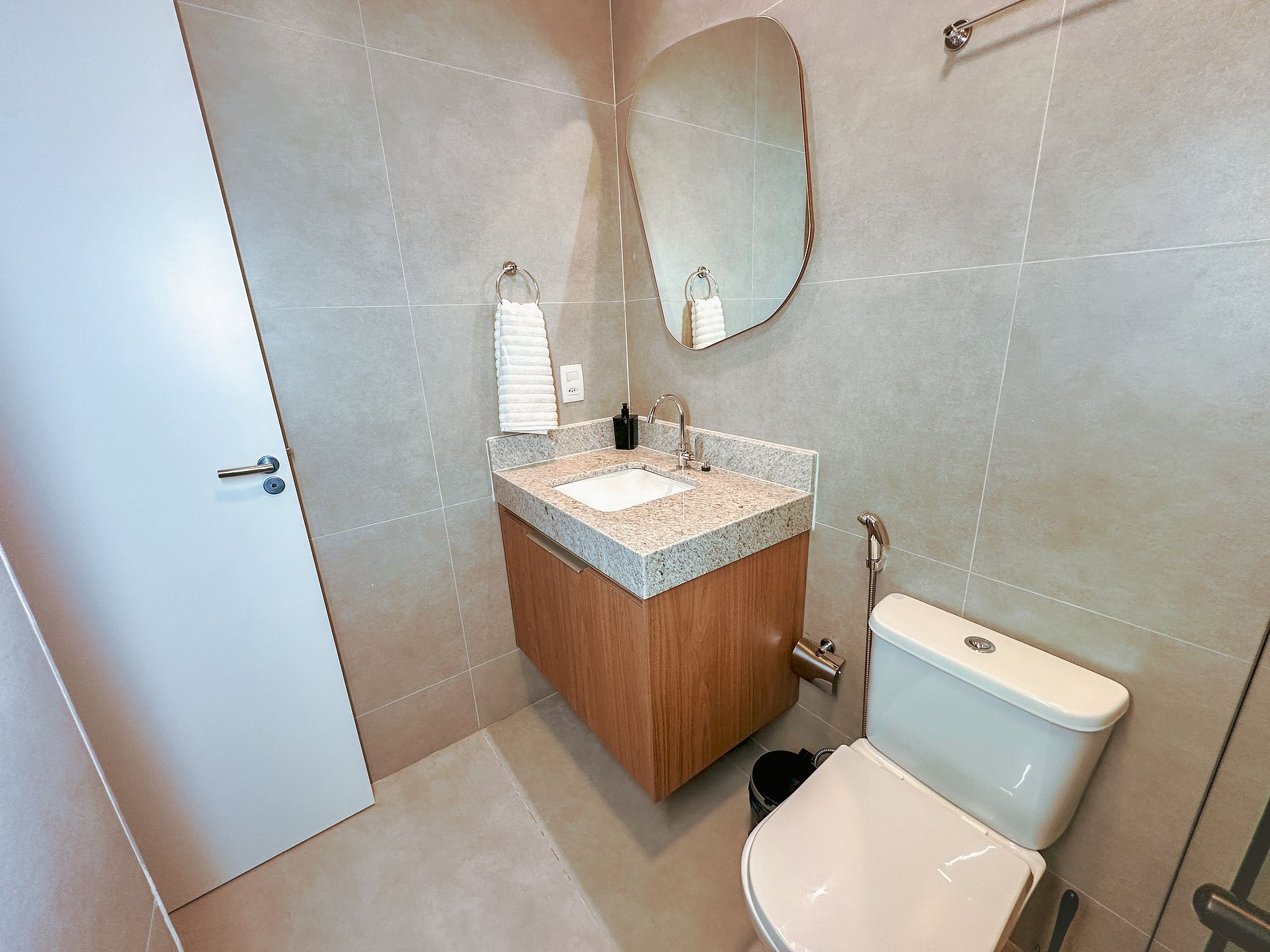 O condomínio oferece elevador, portaria 24h e segurança, garantindo tranquilidade e facilidade desde o check-in até a saída.