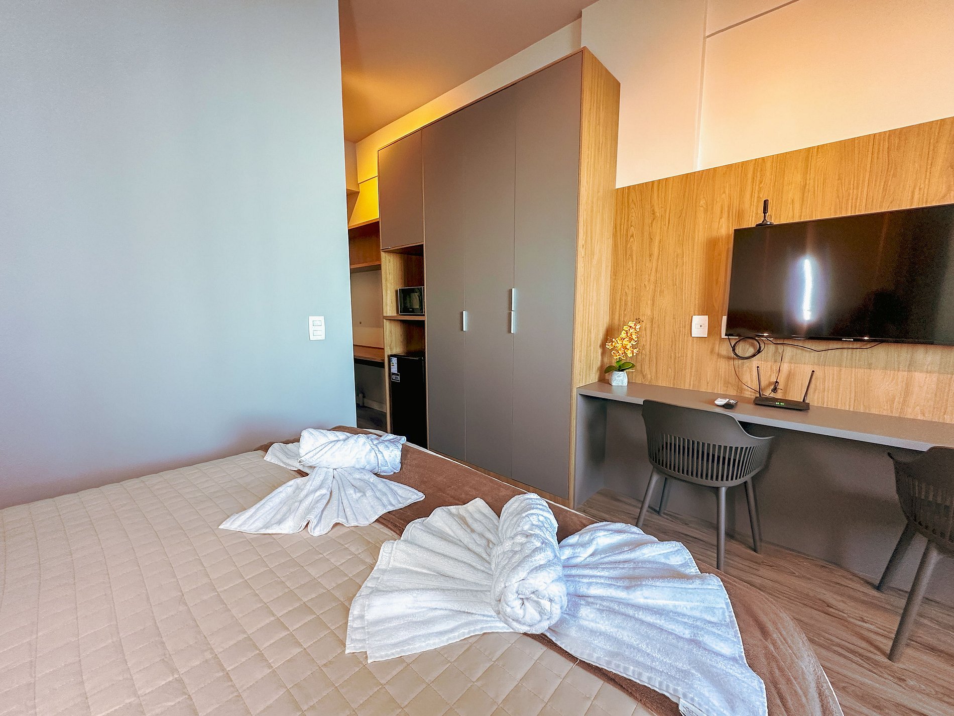 O Studio é muito bem distribuído e traz um ambiente leve, iluminado e super aconchegante.