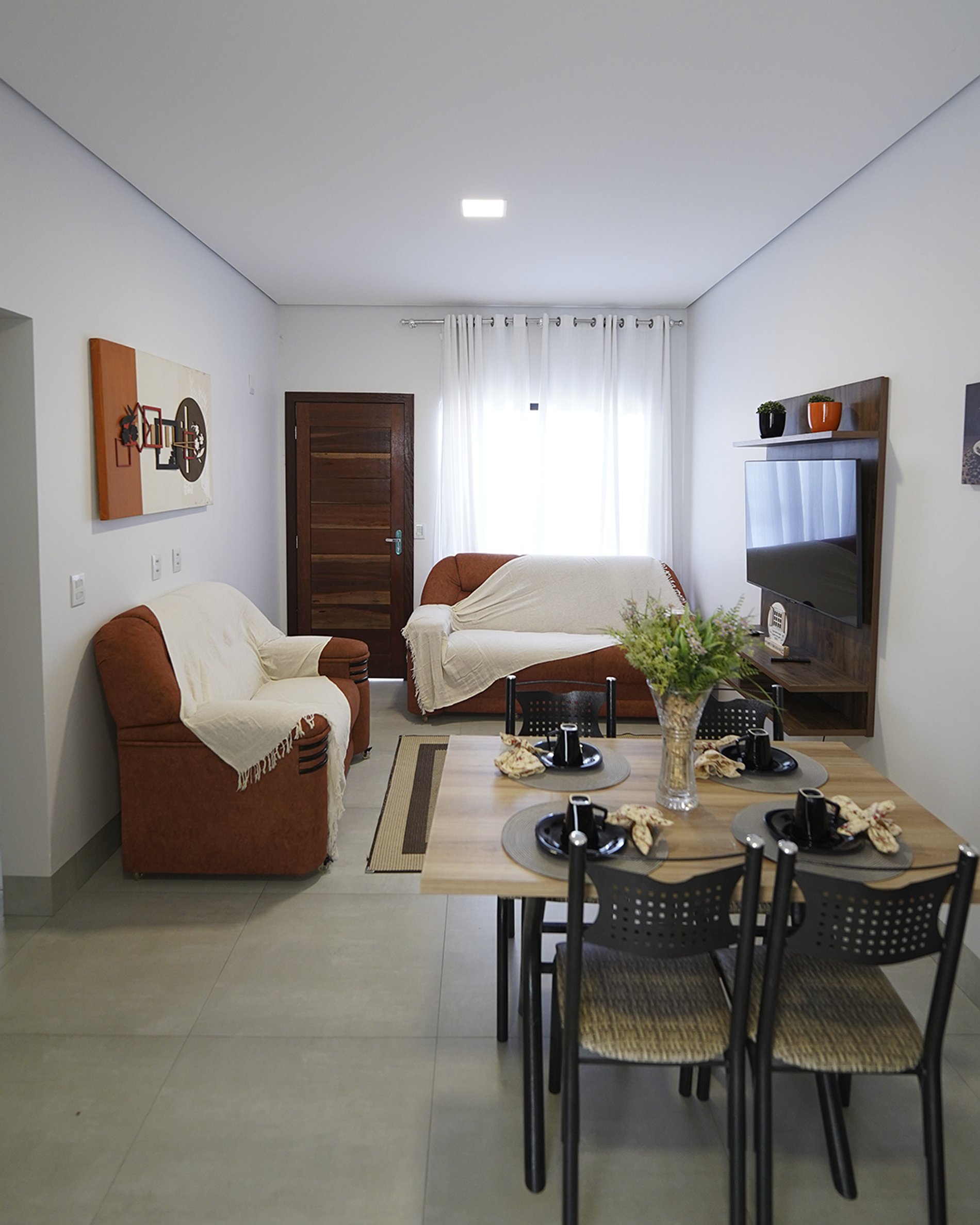 Este apartamento totalmente mobiliado acolhe você com ambientes prontos para viver. A sala integra estar e jantar em um layout funcional, onde a luz natural valoriza cada detalhe e a circulação acontece de forma fluida, criando um clima agradável tanto para relaxar quanto para receber.