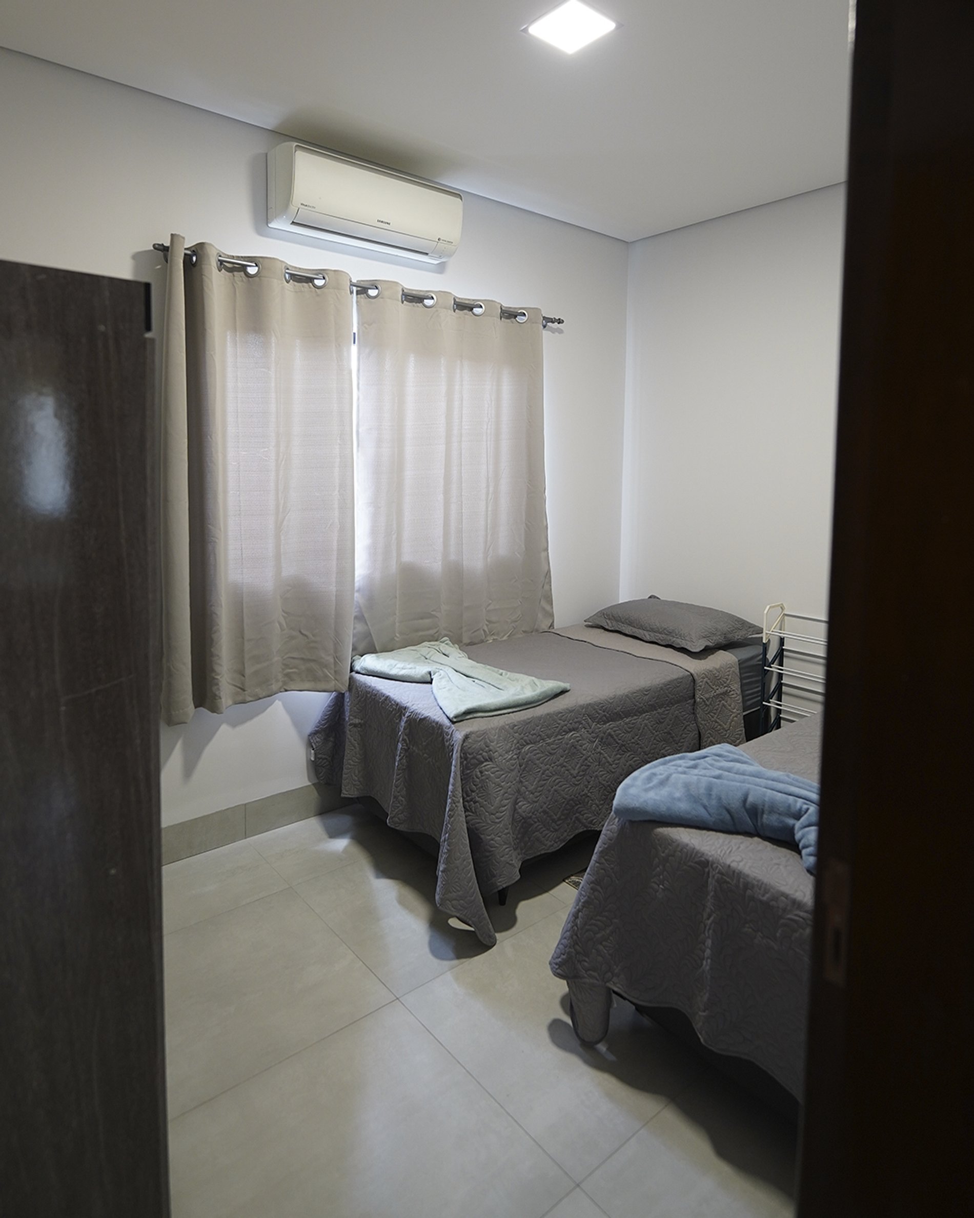 A atmosfera é prática, mas sem abrir mão do conforto. Os dormitórios acomodam até quatro pessoas com equilíbrio entre convivência e privacidade, oferecendo descanso verdadeiro após dias intensos. A cozinha equipada facilita a rotina e convida a momentos simples — um café sem pressa, uma refeição compartilhada, a sensação de que tudo já está no lugar certo.