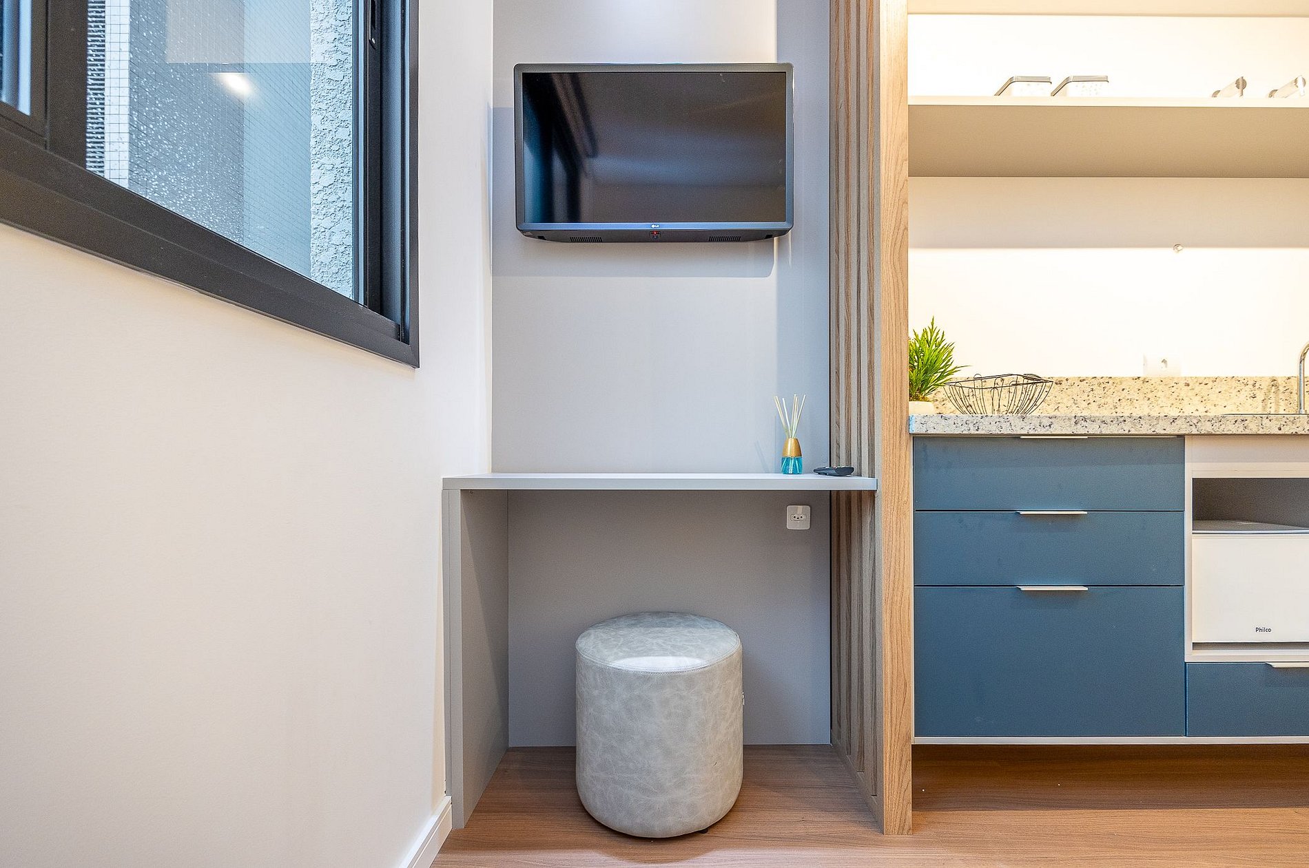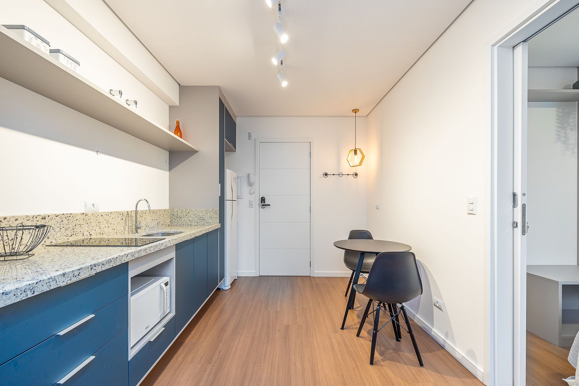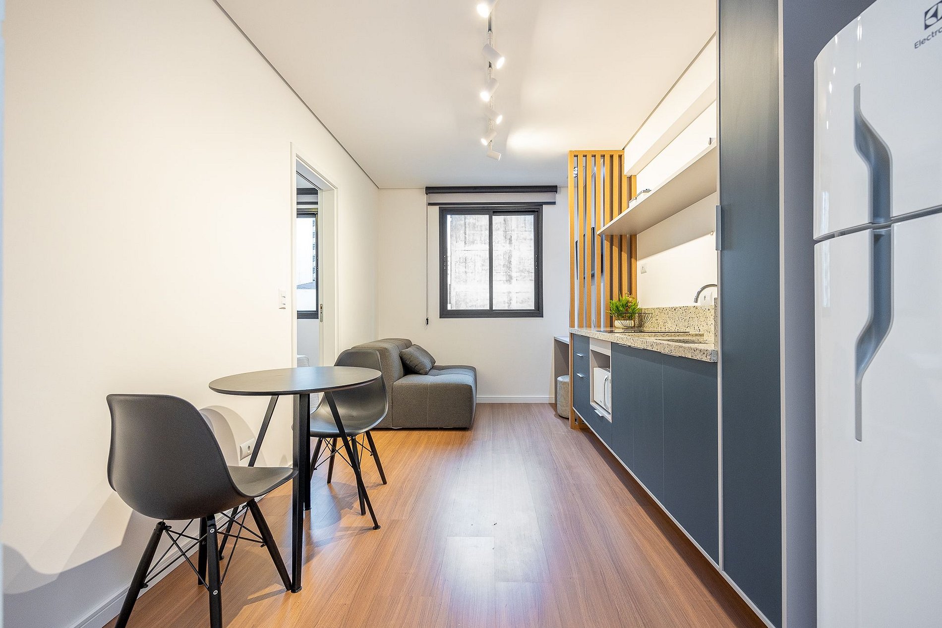 Studio totalmente mobiliado, no 3º andar, em excelente localização no centro de Curitiba/PR. Finamente decorado, com aproximadamente 30m², conta com: