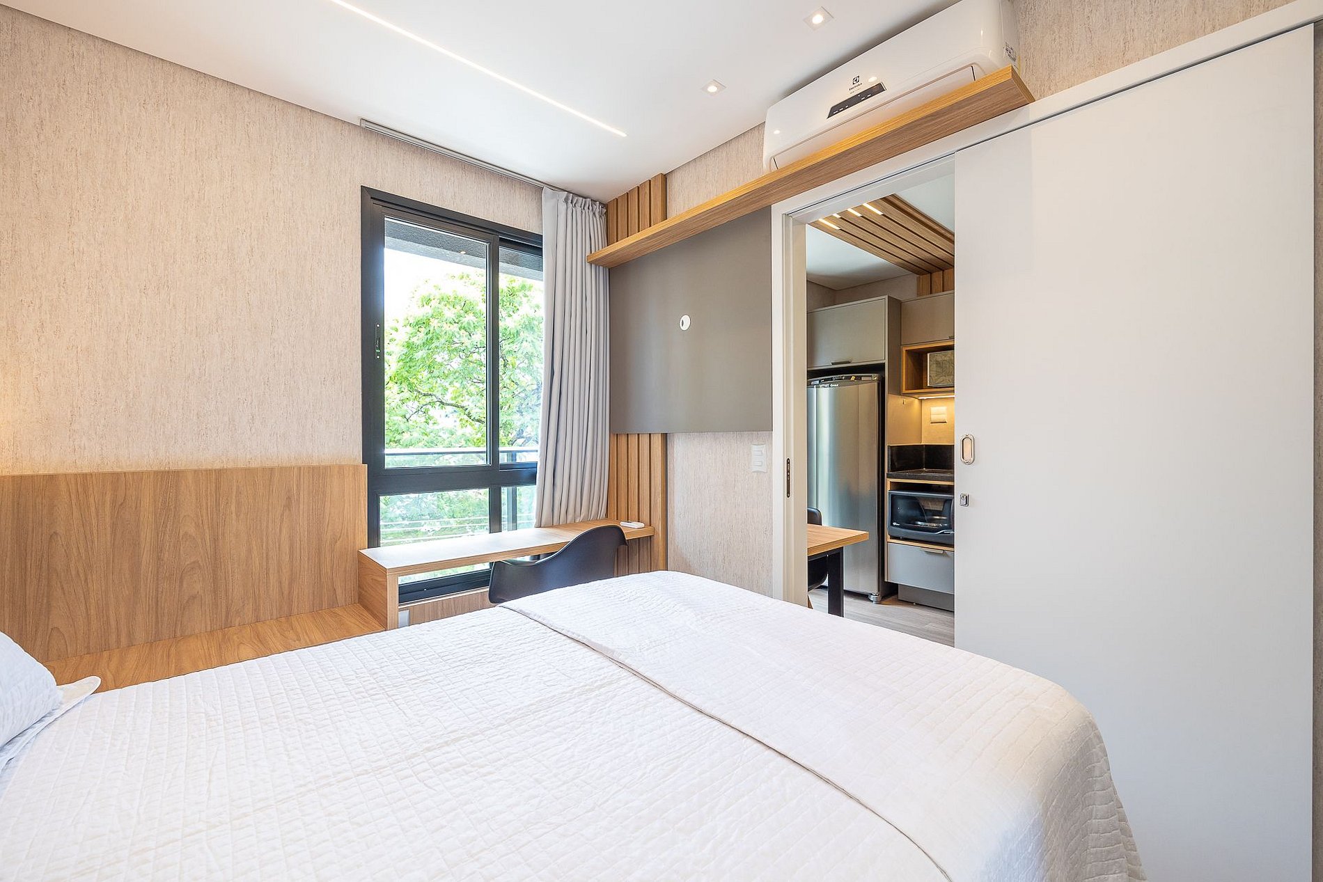 Wi-Fi incluído, Aquecimento a gás, Móveis sob medida, Cama box casal, Smart TV, Cadeiras, Geladeira, Fogão de indução, Jogo de panelas, ar condicionado, Talheres, Jogo de facas, Louças, Utensílios para cozinha.