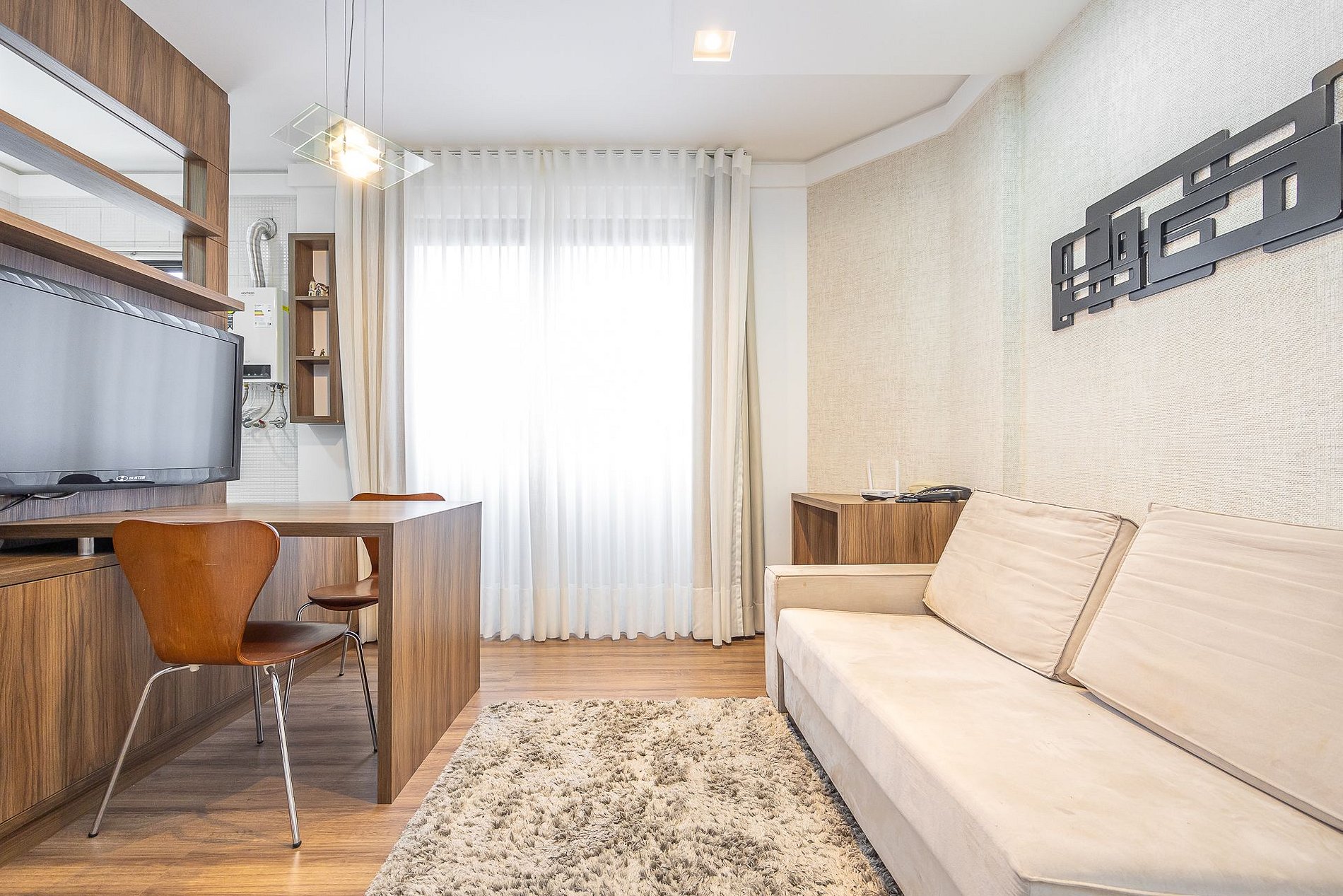 Apartamento de 1 quarto, totalmente mobiliado, no 3º andar, em excelente localização no Alto da Glória em Curitiba/PR. Finamente decorado. Com aproximadamente 35m², conta com: Wi-Fi incluído, Aquecimento a gás, Móveis sob medida, Cama box casal, Sofá, TV, Cadeiras, Geladeira duplex, Fogão à gás, Jogo de panelas, Talheres, Jogo de facas, Louças, Utensílios para cozinha.