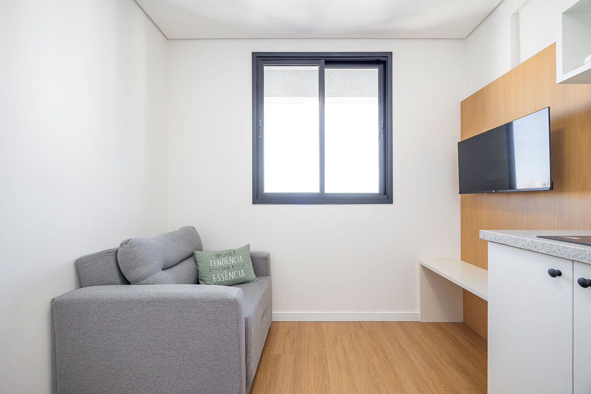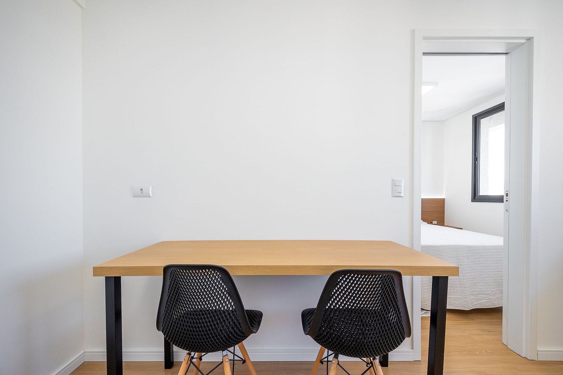 Studio totalmente mobiliado, no 4º andar, em excelente localização no centro de Curitiba/PR. Finamente decorado, com aproximadamente 30m², conta com: Wi-Fi incluído, Aquecimento elétrico, Móveis sob medida, Cama box casal, Smart TV, banquetas, frigobar, Fogão de elétrico de 2 bocas, microondas, Jogo de panelas, Talheres, Jogo de facas,Louças, Utensílios para cozinha. *Roupas de cama, mesa e banho não estão incluídas.