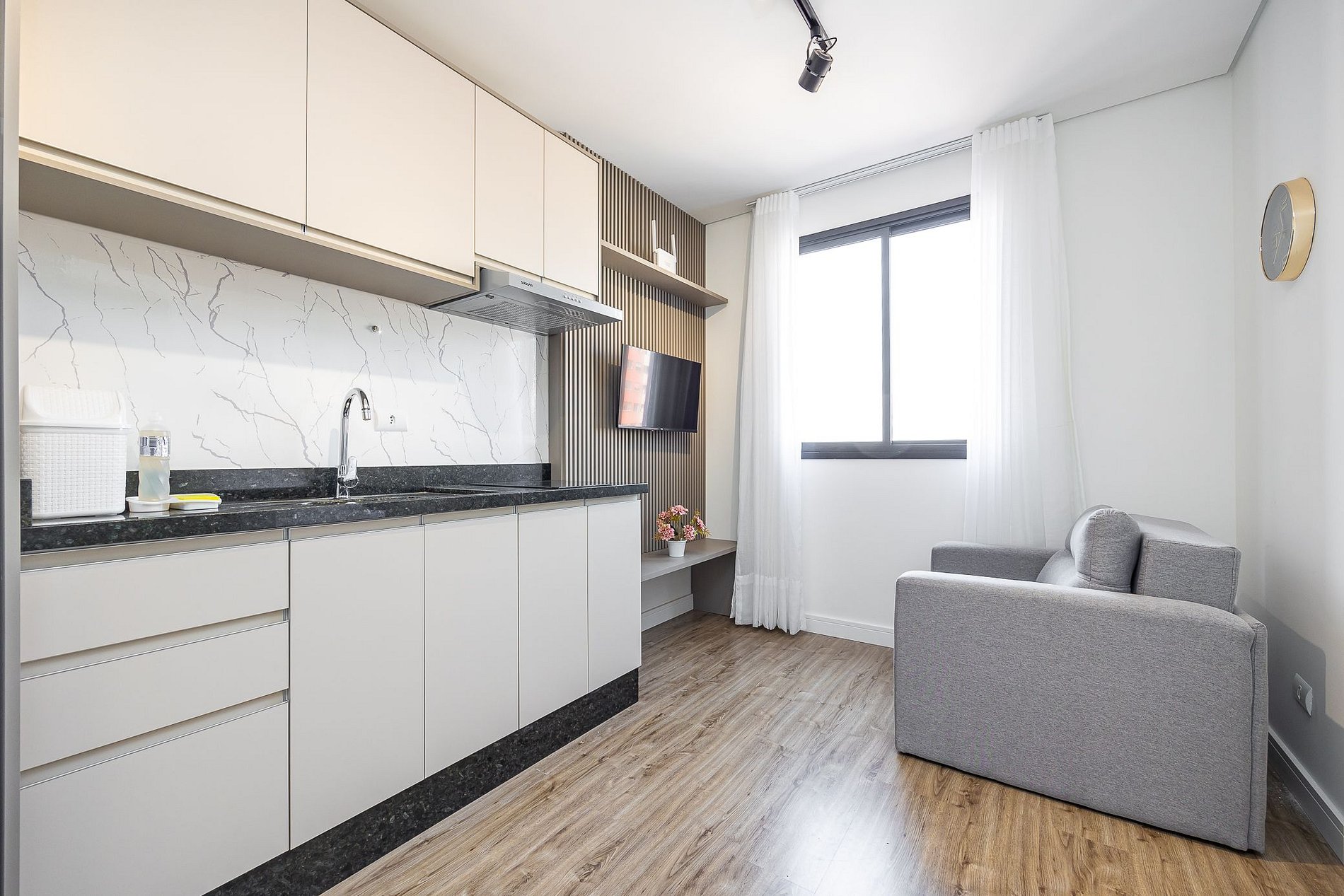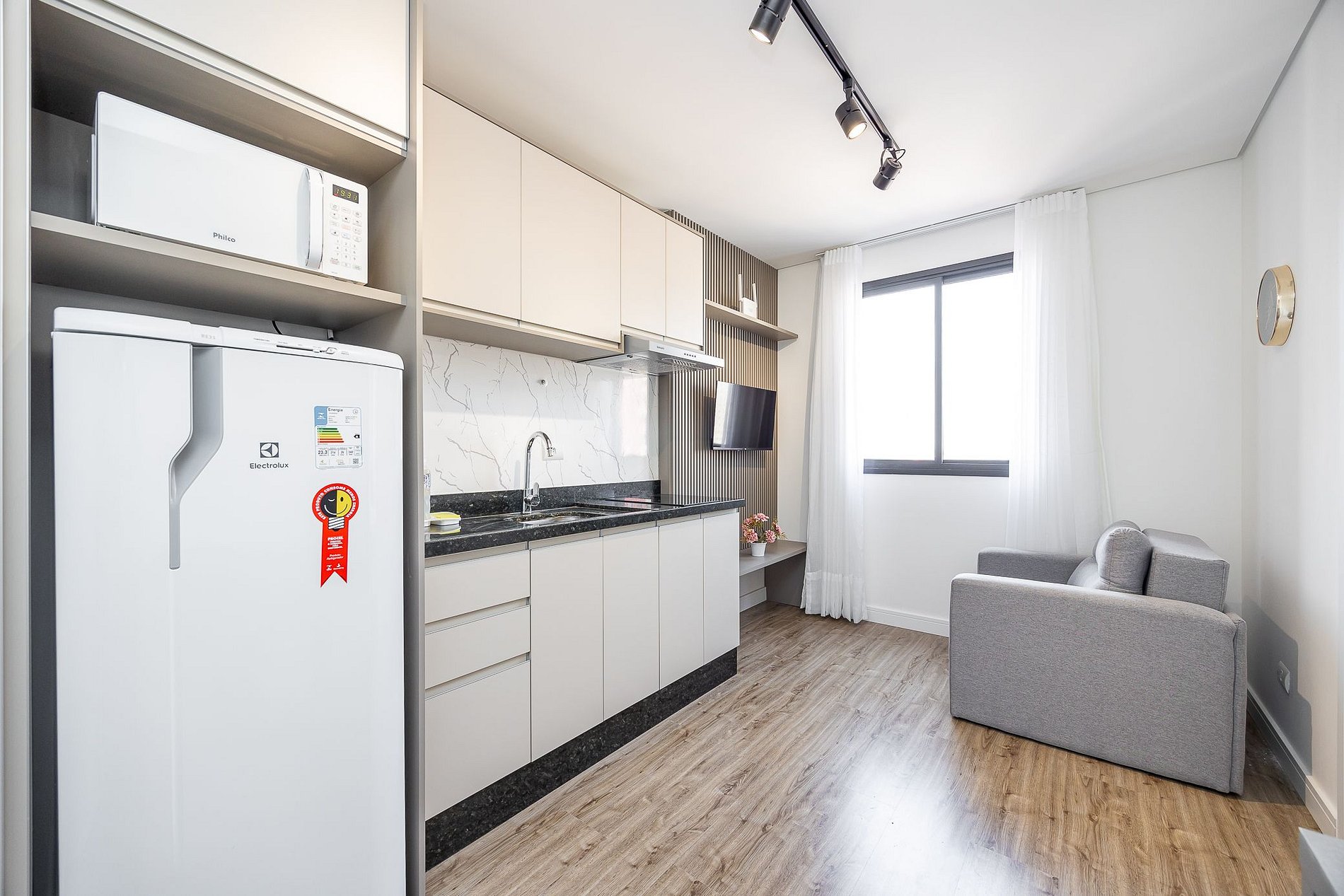 Studio totalmente mobiliado na rua Doutor Faivre 1044, nº 9º andar, em excelente localização no centro de Curitiba/PR. Finamente decorado, com aproximadamente 30m², conta com: