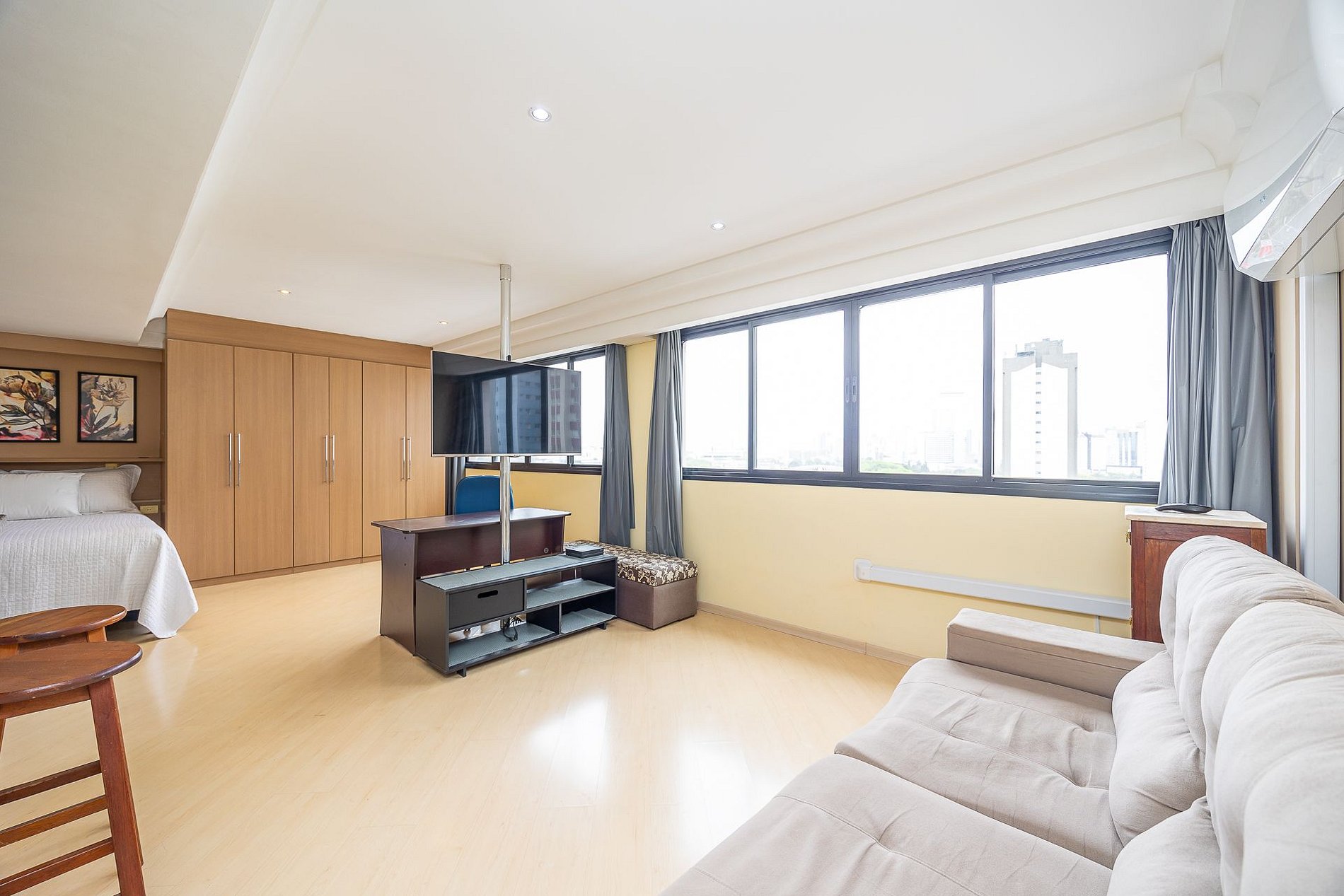Studio totalmente mobiliado, no 9º andar, em excelente localização no Cristo Rei de Curitiba/PR. Finamente decorado, com aproximadamente 41m², conta com: