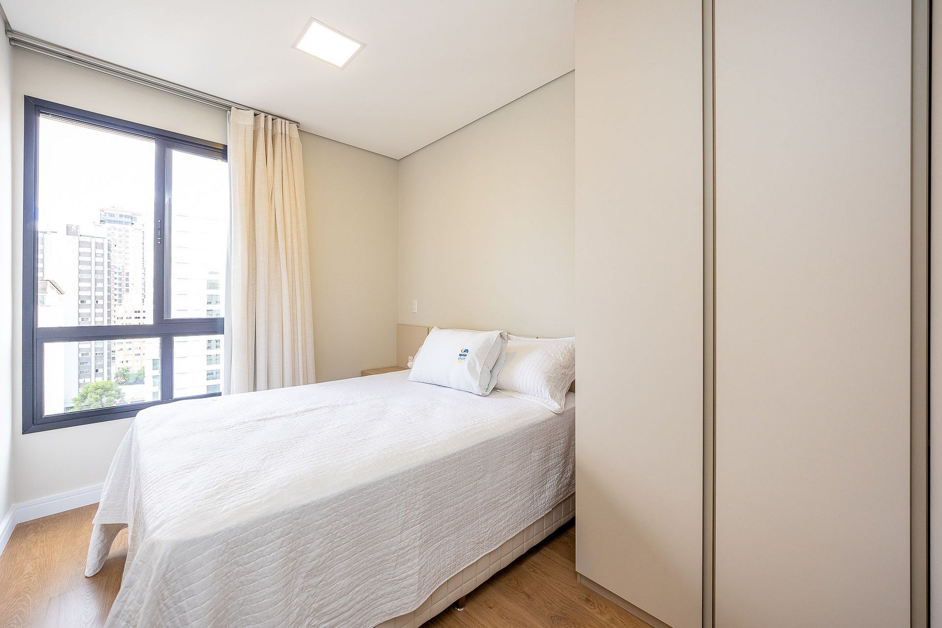 Studio totalmente mobiliado, no 12º andar, em excelente localização no centro de Curitiba/PR. Finamente decorado, com aproximadamente 29m², conta com: