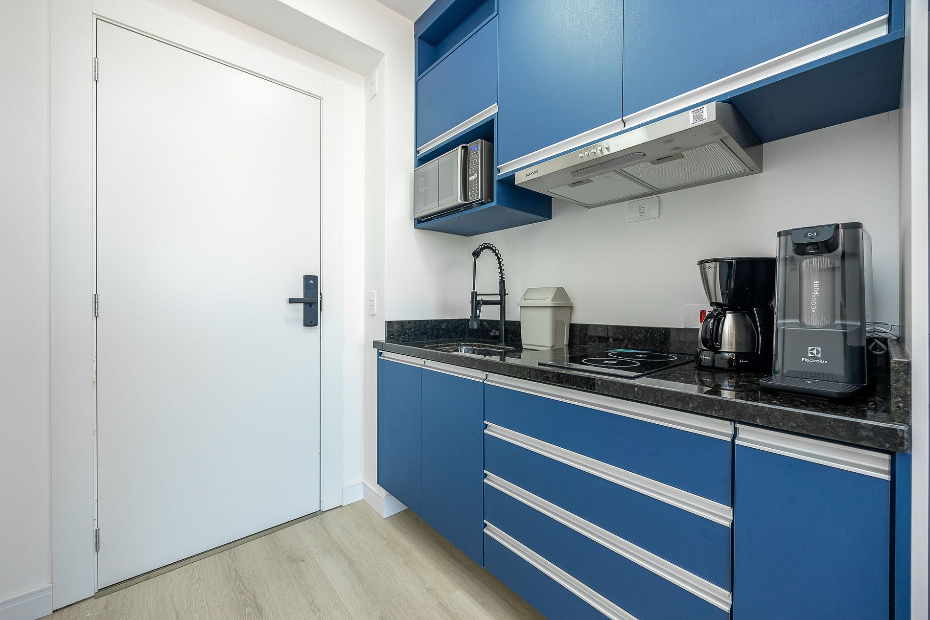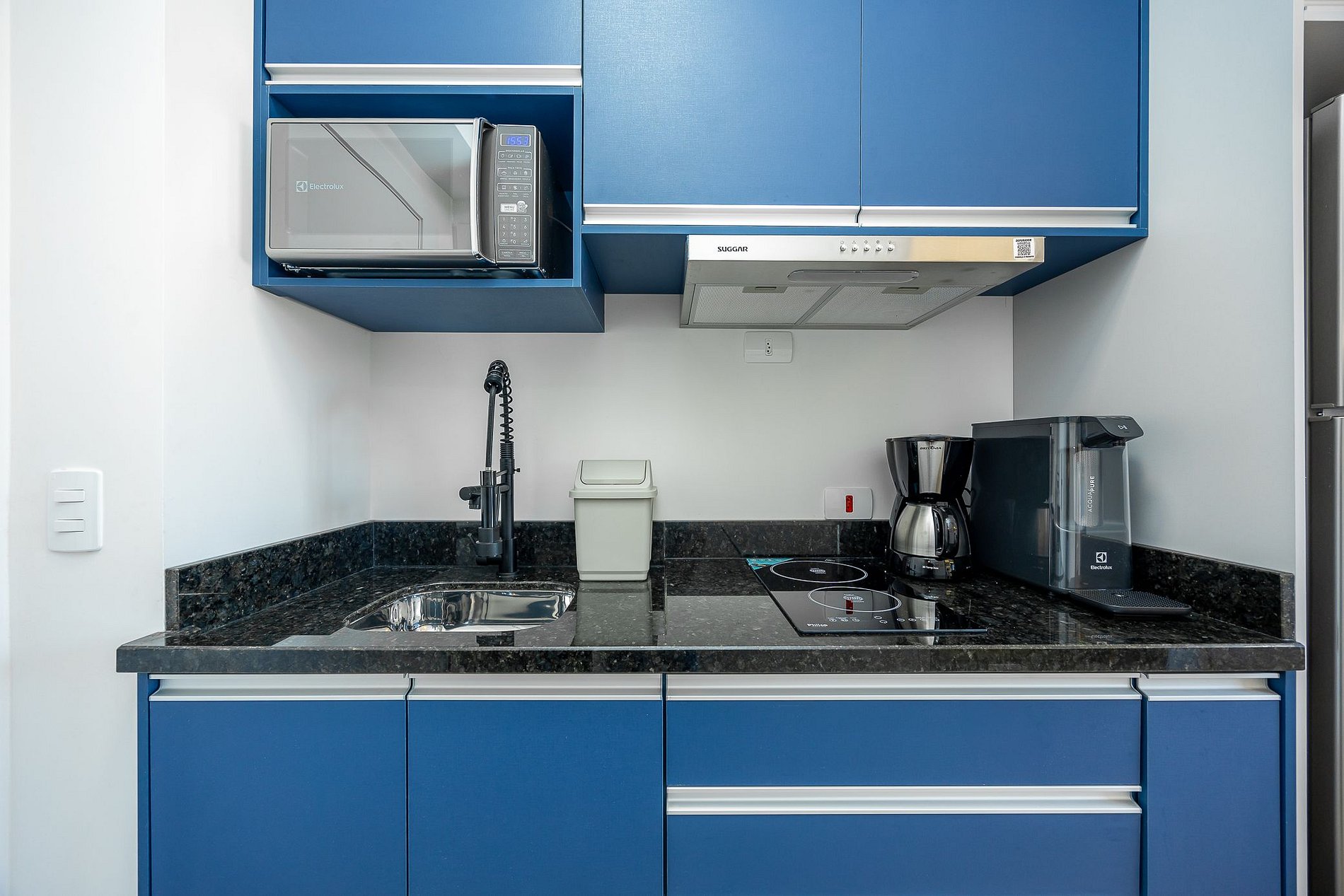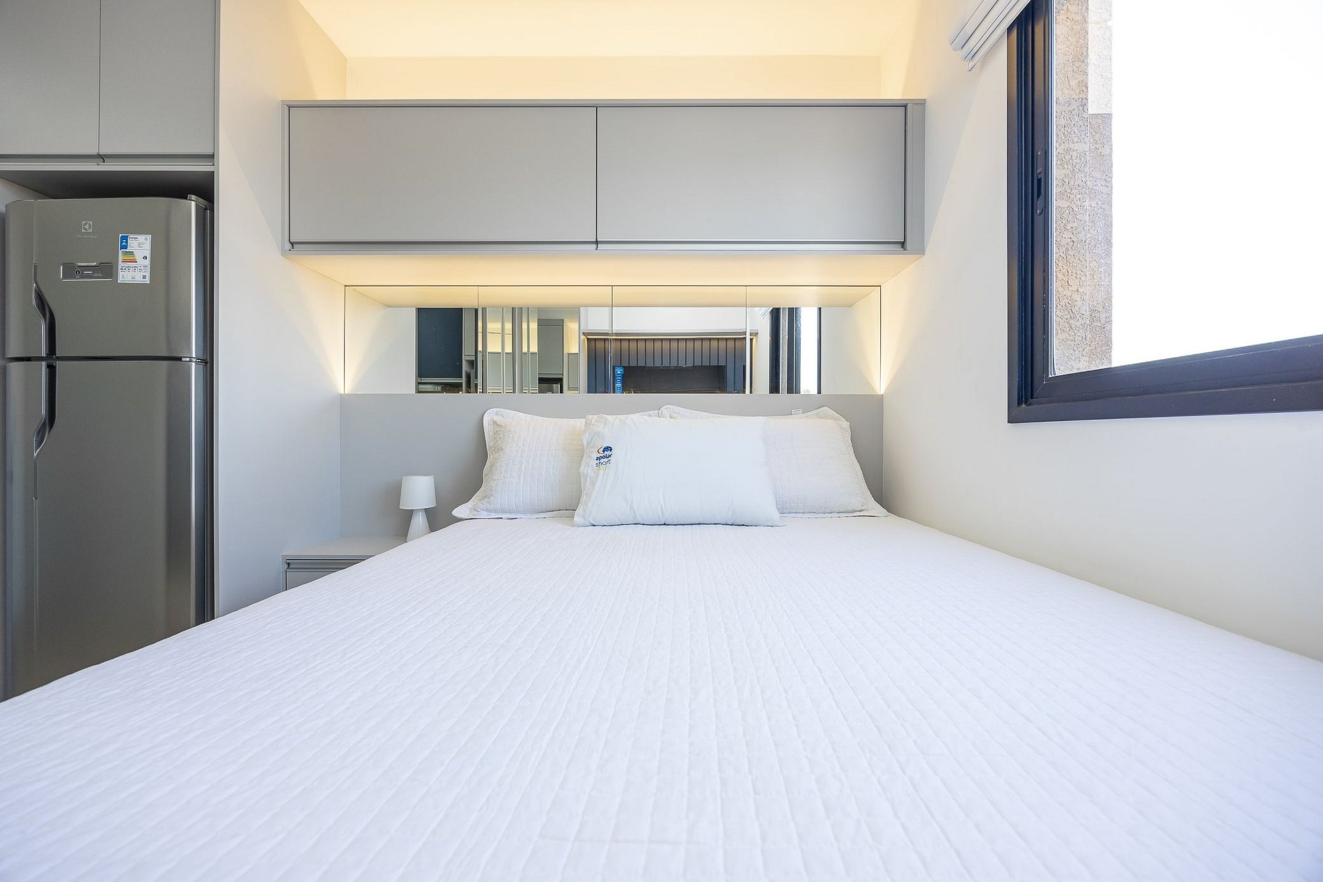 Wi-Fi incluído, Aquecimento central, Móveis sob medida, Cama box casal, Smart TV, geladeira, Fogão de indução de 2 bocas, micro-ondas, Jogo de panelas, Talheres, Jogo de facas, Louças, Utensílios para cozinha, Airfryer.