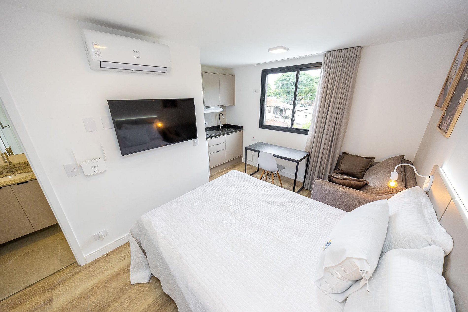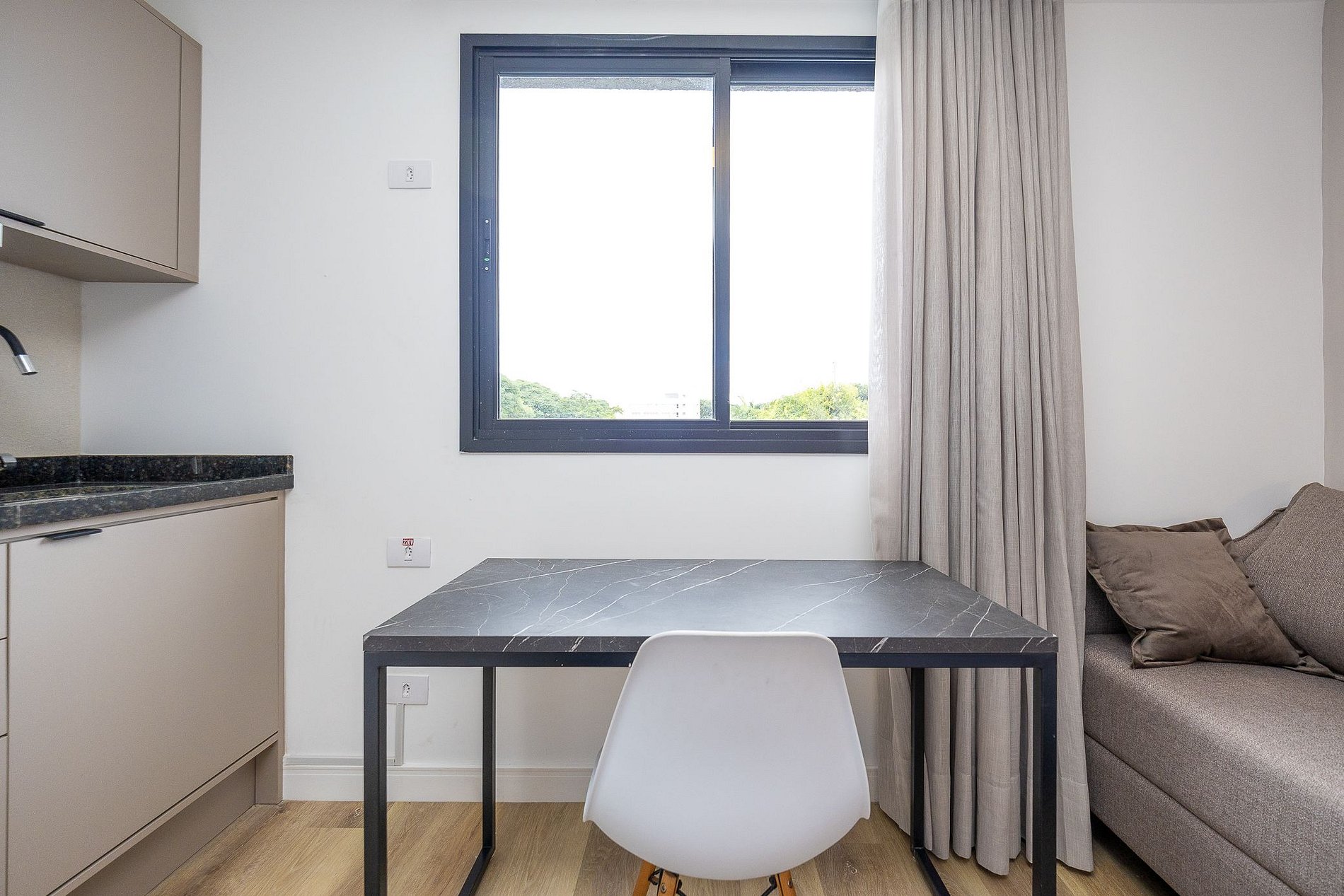 Sobre o apartamento: Studio totalmente mobiliado, no 3º andar, em excelente localização no Rebouças em Curitiba/PR. Finamente decorado, com aproximadamente 17m², conta com: Wi-Fi incluído, Aquecimento central, Móveis sob medida, Cama box casal, Smart TV, frigobar, Fogão de indução de 2 bocas, micro-ondas, Jogo de panelas, Talheres, Jogo de facas, Louças, Utensílios para cozinha. Região com facilidades e comodidades. *Roupas de cama, mesa e banho não estão incluídas. O que está incluído no pacote mensal*: Aluguel, condomínio, água, gás, internet e energia eléctrica. O pacote mensal é calculado com base no consumo médio dos meses anteriores e consumos muito elevados poderão gerar cobrança adicional.