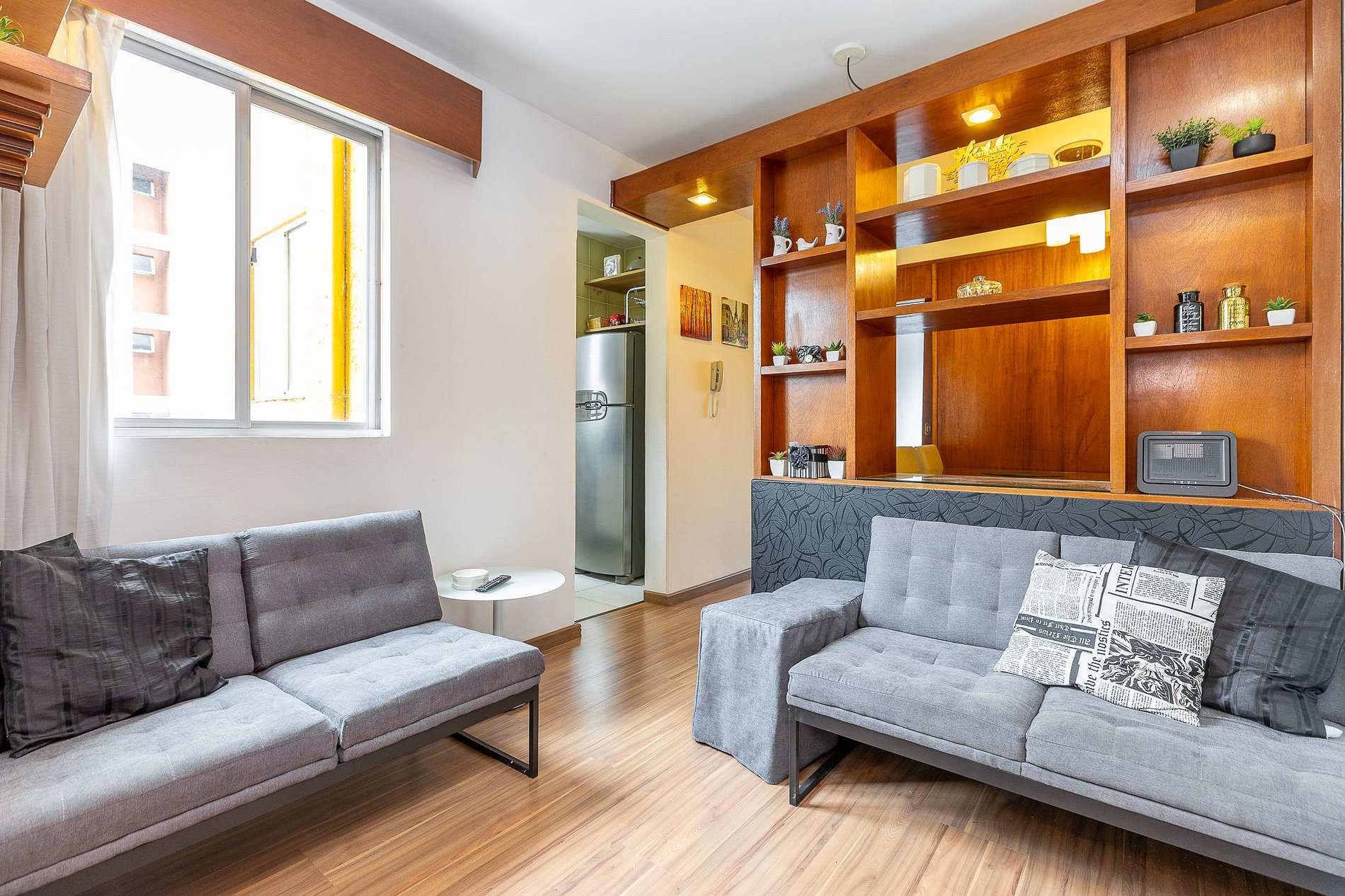 Apartamento dois quartos totalmente mobiliado, no 5º andar, em excelente localização no Centro de Curitiba/PR. Finamente decorado, com aproximadamente 42m², conta com: