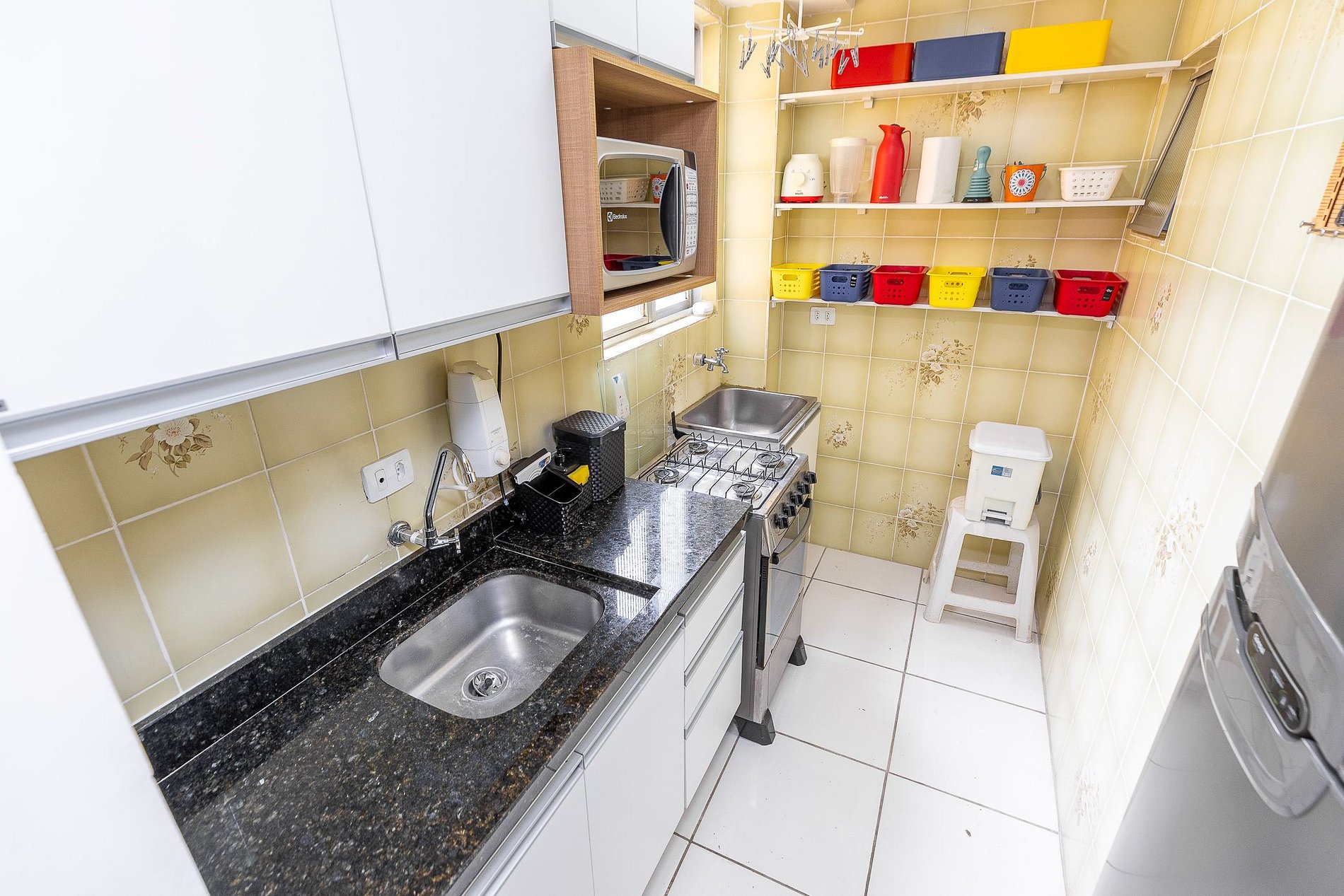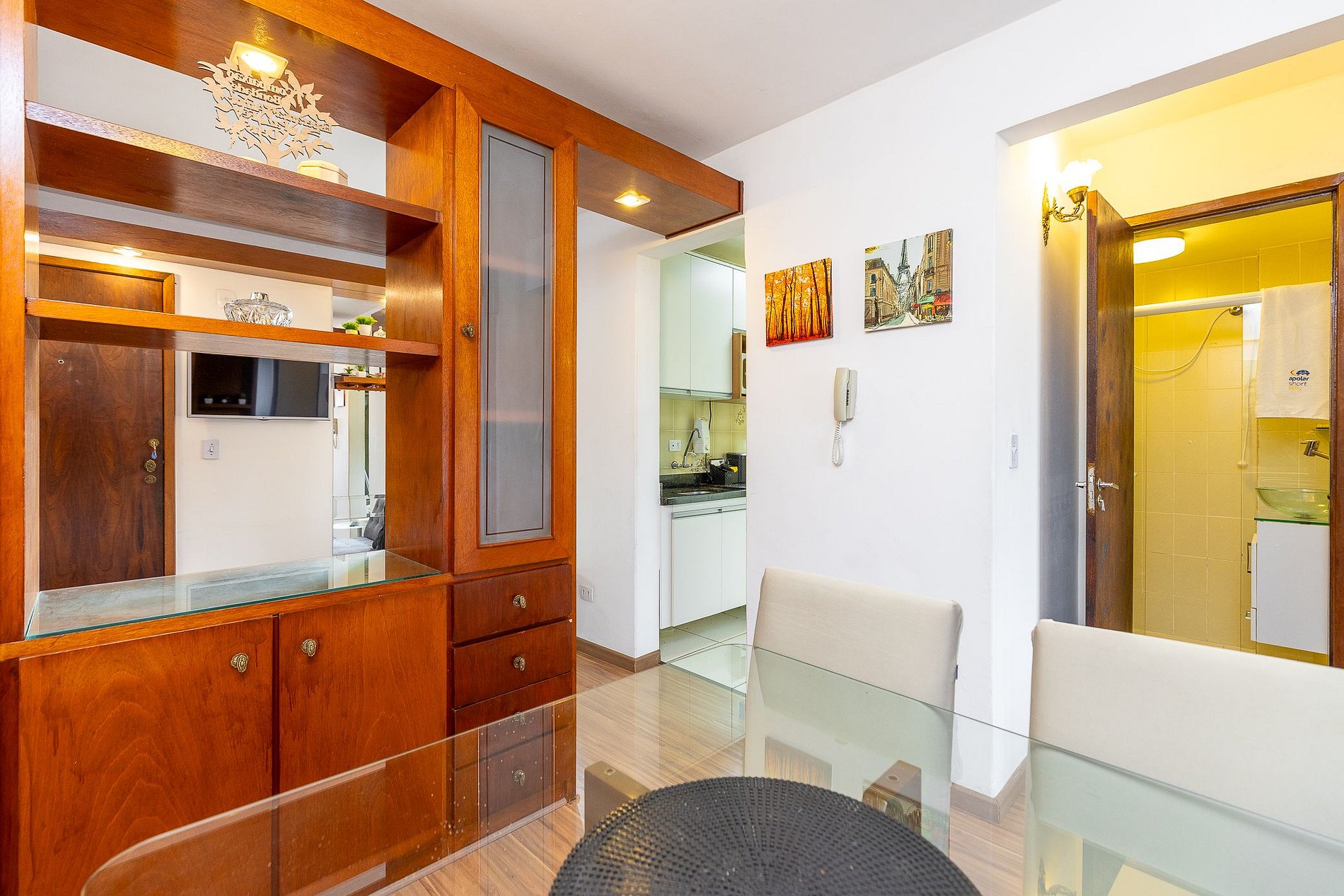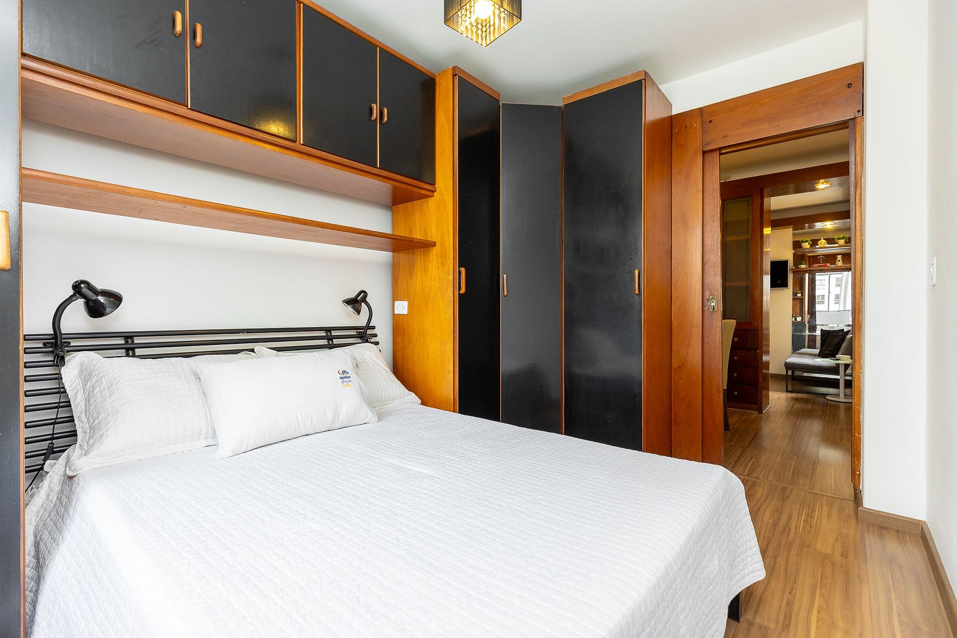 Wi-Fi incluído, Aquecimento central, Móveis sob medida, Cama box casal, Smart TV, Geladeira duplex, Fogão 4 bocas, micro-ondas, Jogo de panelas, Talheres, Jogo de facas, Louças, Utensílios para cozinha.