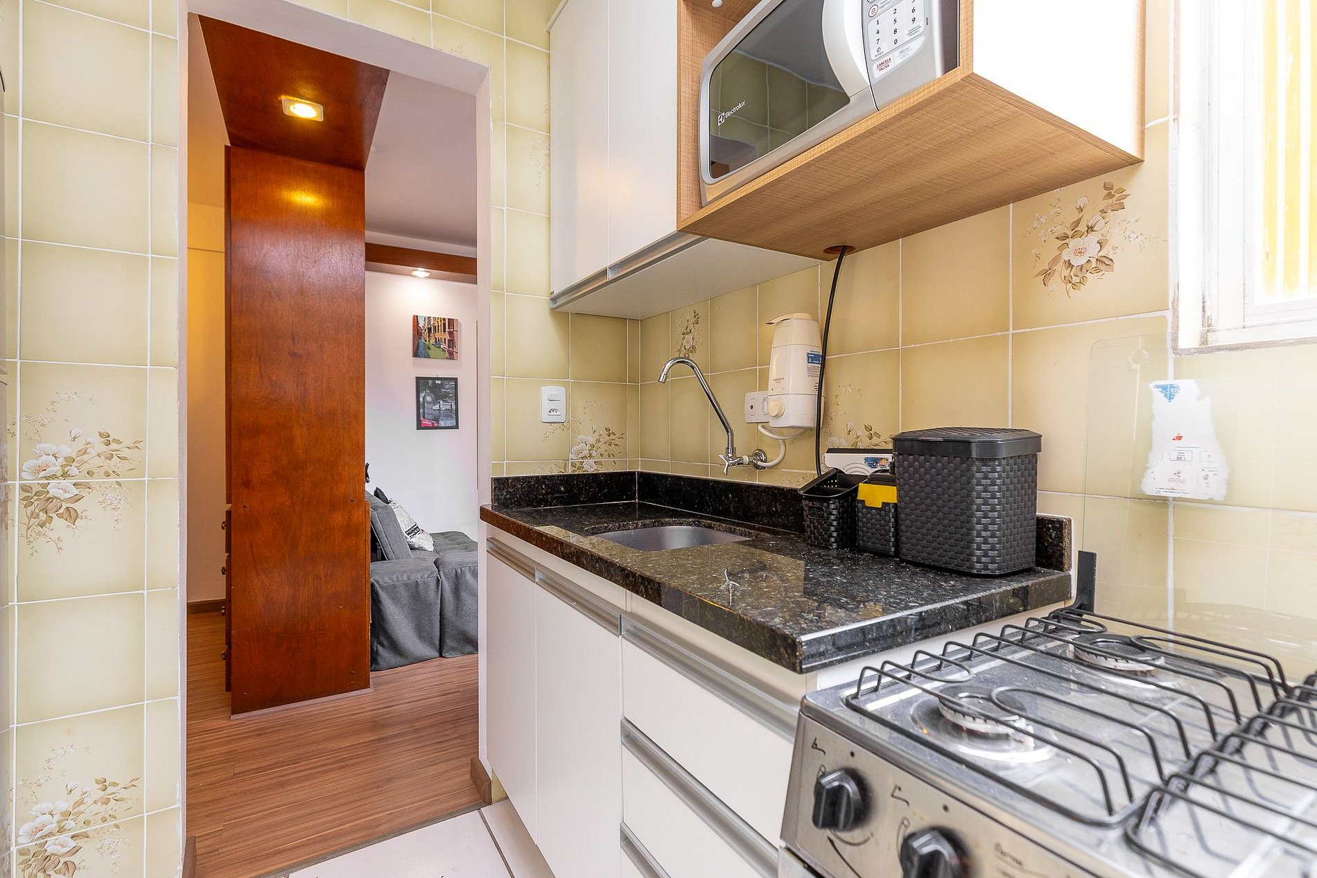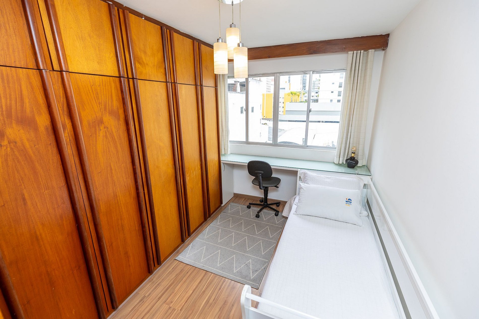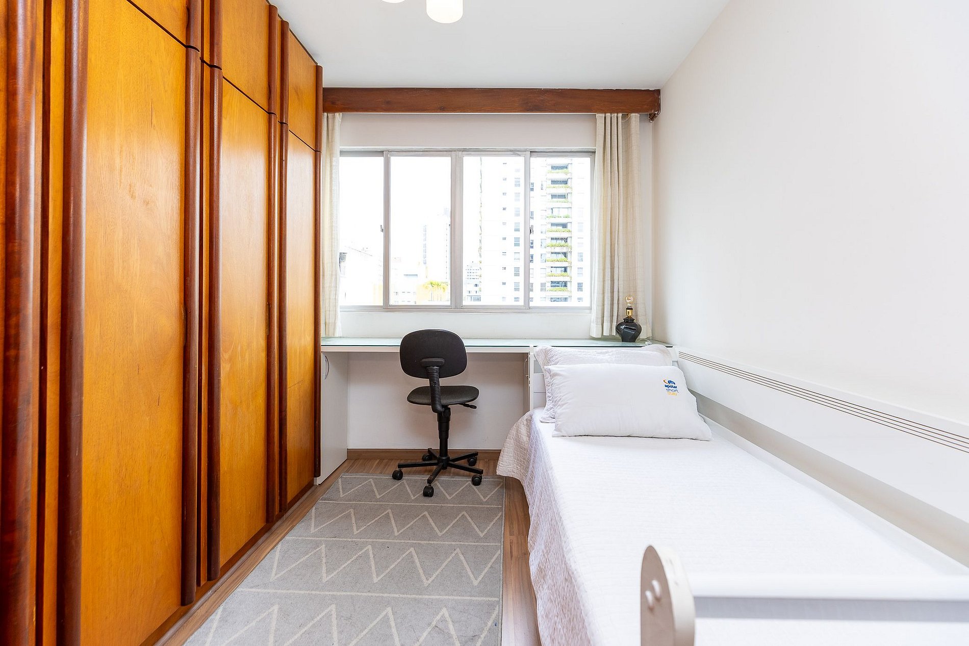Wi-Fi incluído, Aquecimento central, Móveis sob medida, Cama box casal, Smart TV, Geladeira duplex, Fogão 4 bocas, micro-ondas, Jogo de panelas, Talheres, Jogo de facas, Louças, Utensílios para cozinha.