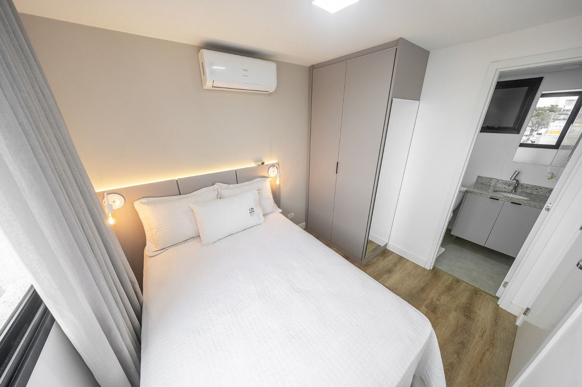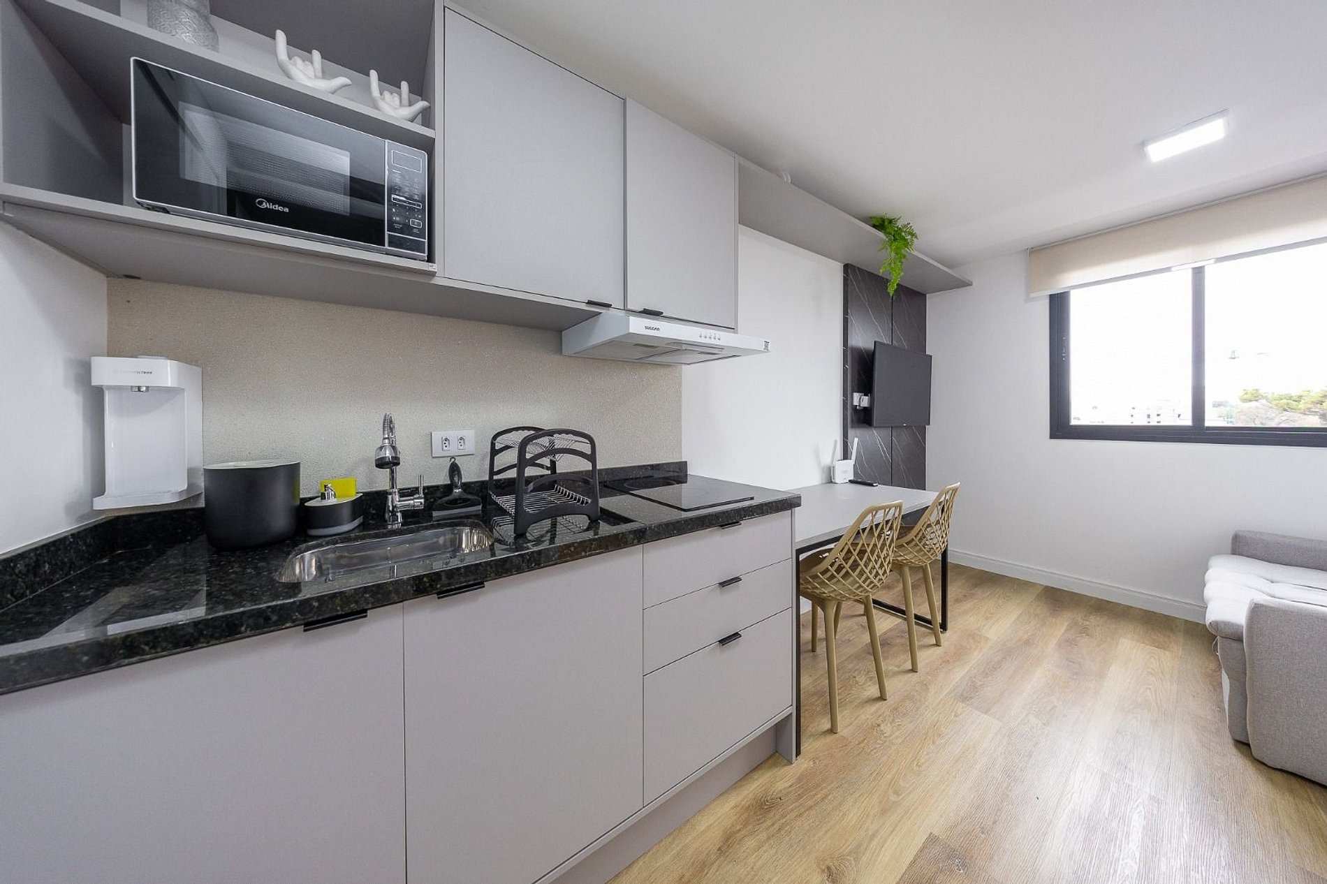 Studio totalmente mobiliado, no 4º andar, em excelente localização em Rebouças em Curitiba/PR. Finamente decorado, com aproximadamente 25m², conta com: