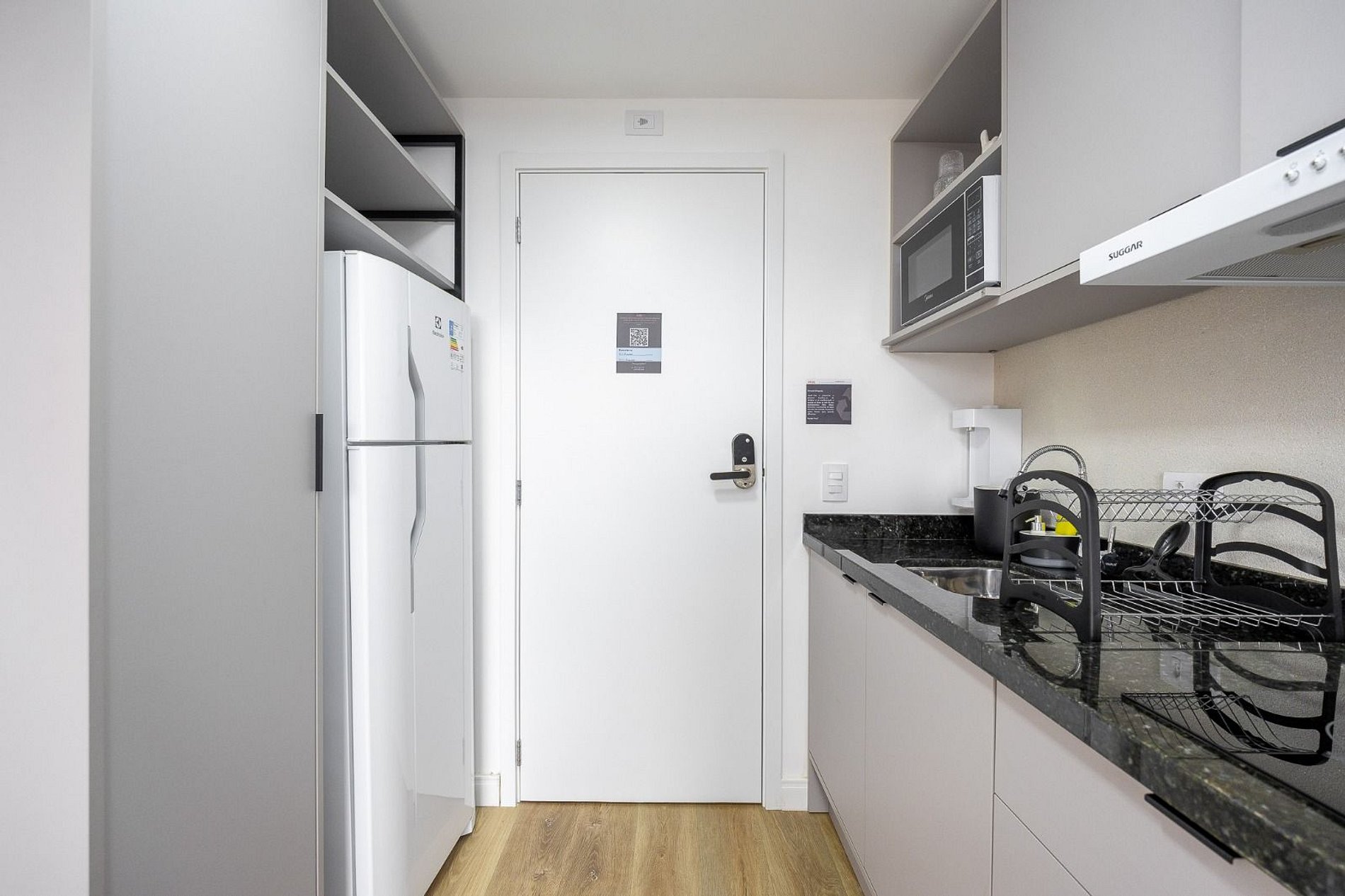 Wi-Fi incluído, Aquecimento central, Móveis sob medida, Cama box casal, Smart TV, frigobar, Fogão de indução de 2 bocas, micro-ondas, Jogo de panelas, Talheres, Jogo de facas, Louças, Utensílios para cozinha.