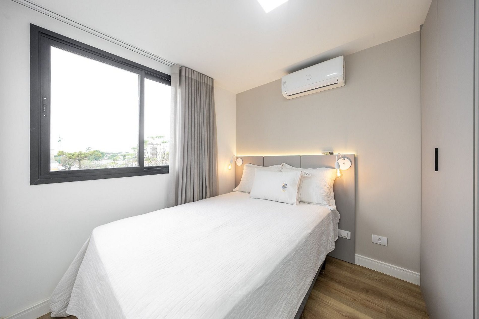 Studio totalmente mobiliado, no 4º andar, em excelente localização em Rebouças em Curitiba/PR. Finamente decorado, com aproximadamente 25m², conta com: