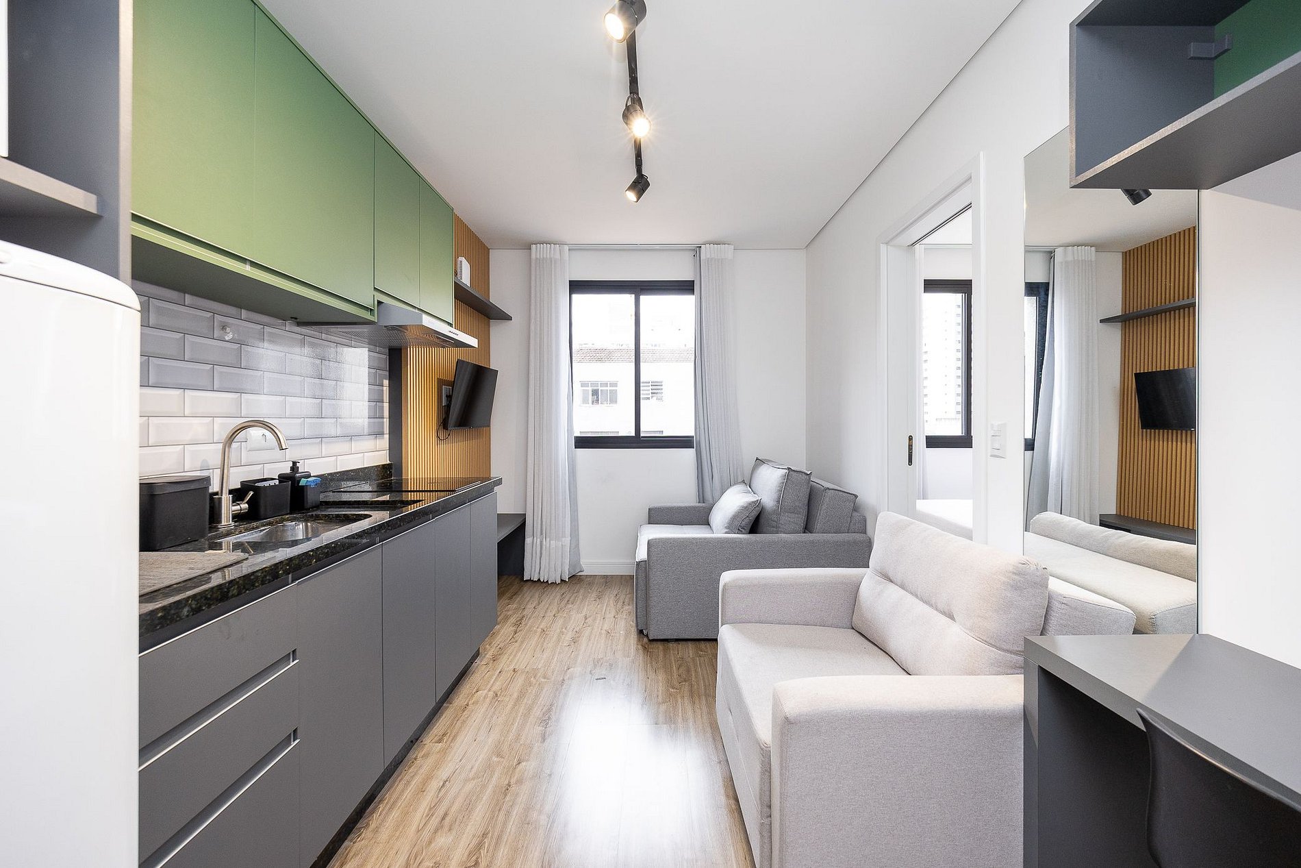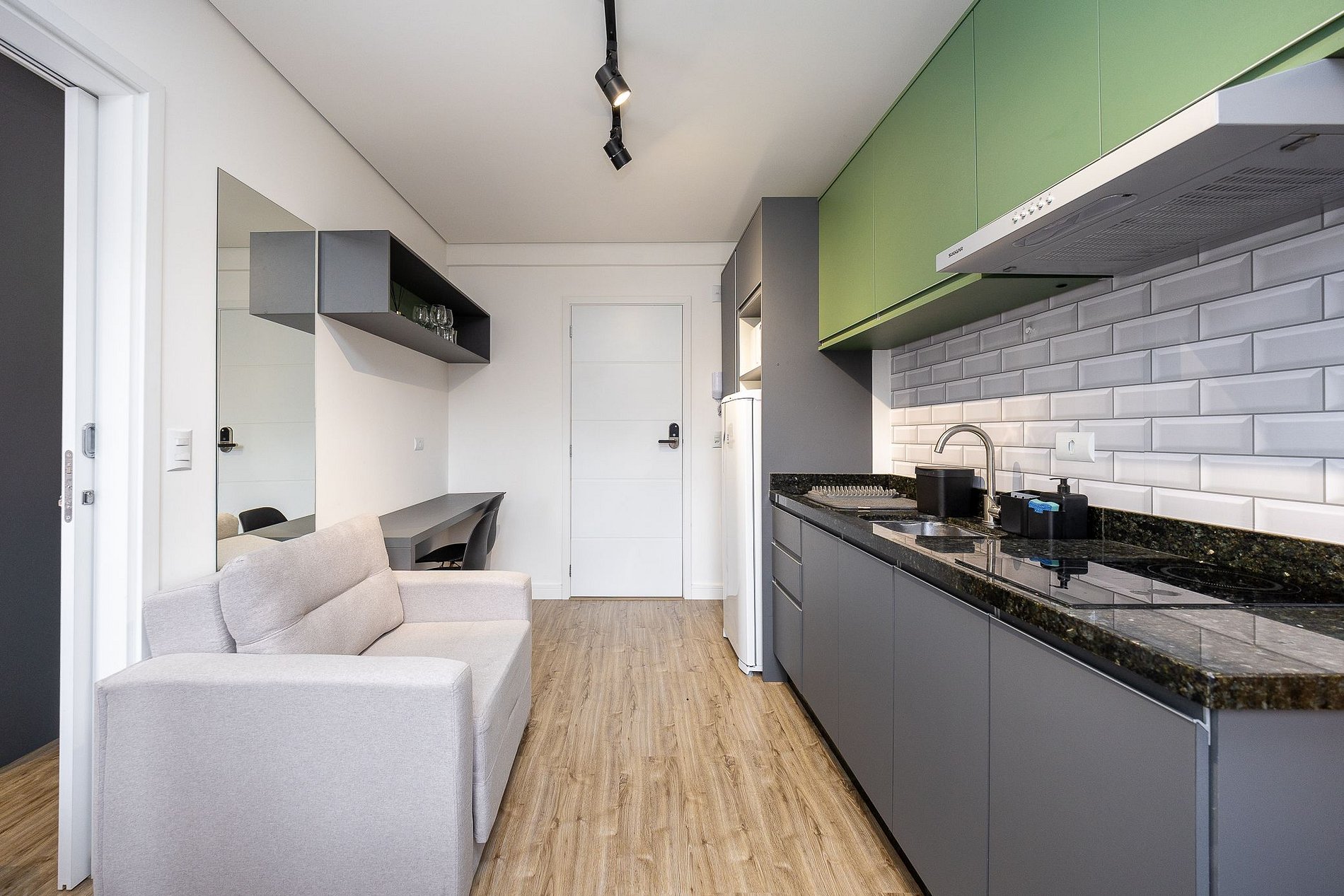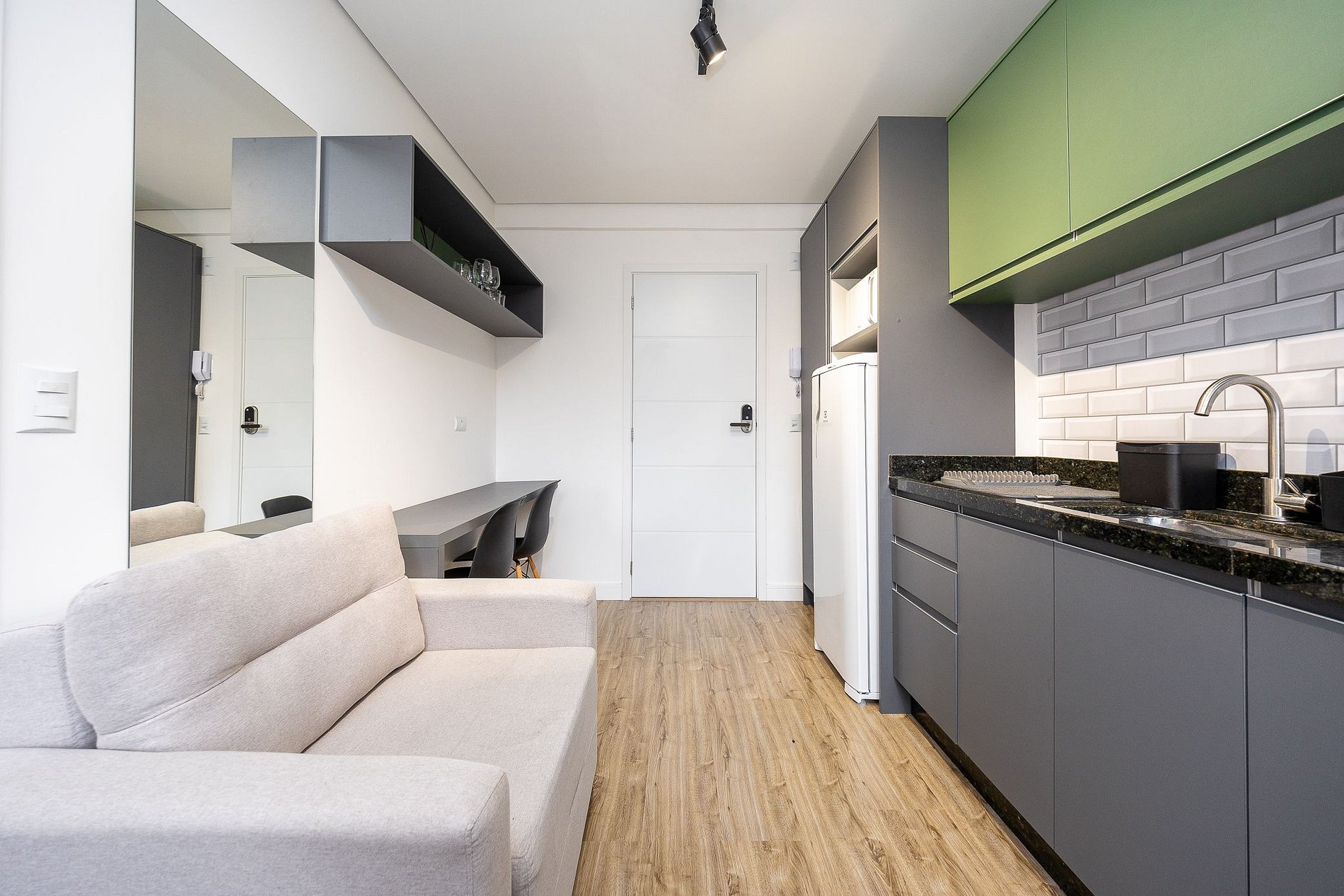 Studio totalmente mobiliado rua Doutor Faivre 1044, no 3º andar, em excelente localização no centro de Curitiba/PR. Finamente decorado, com aproximadamente 30m², conta com: