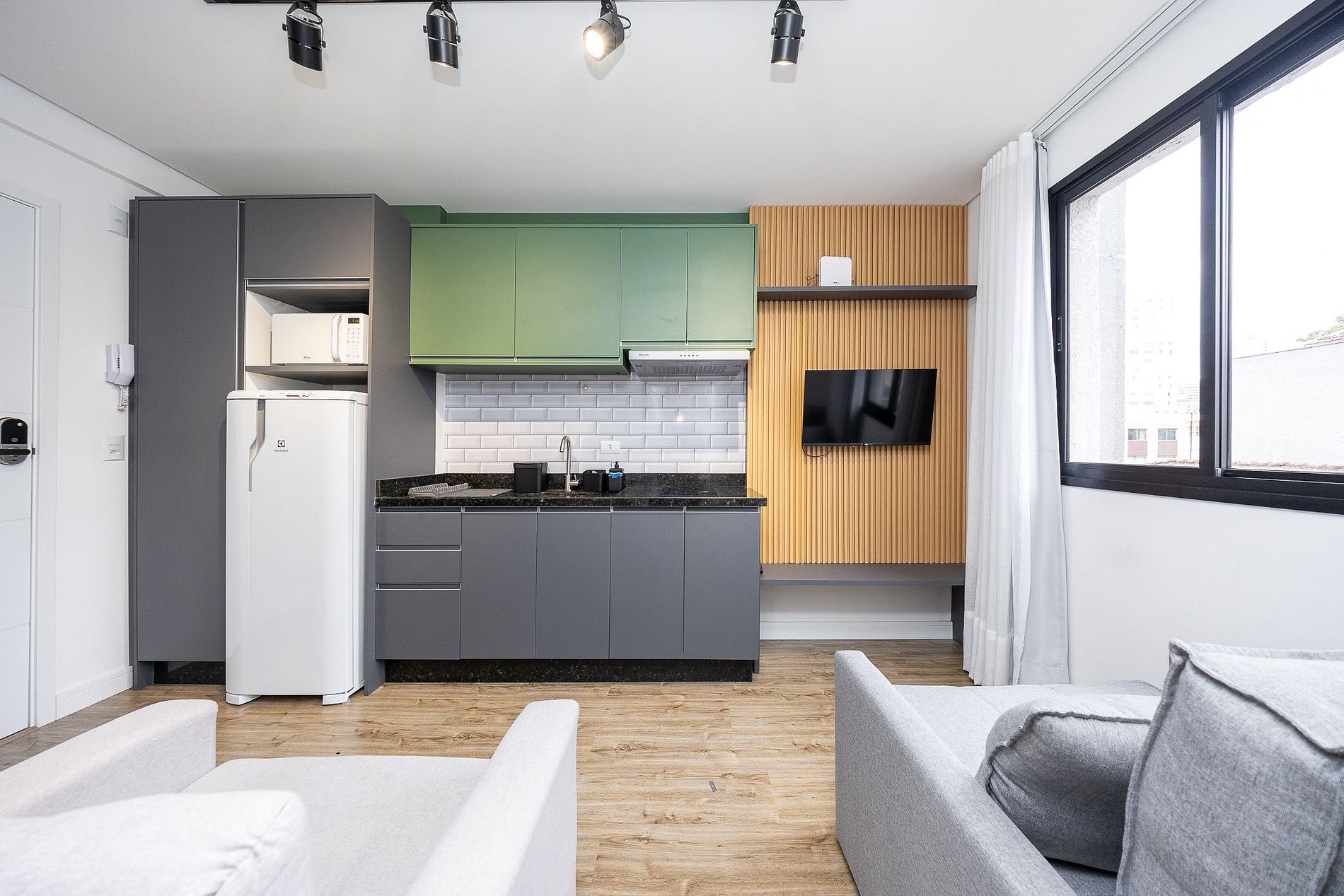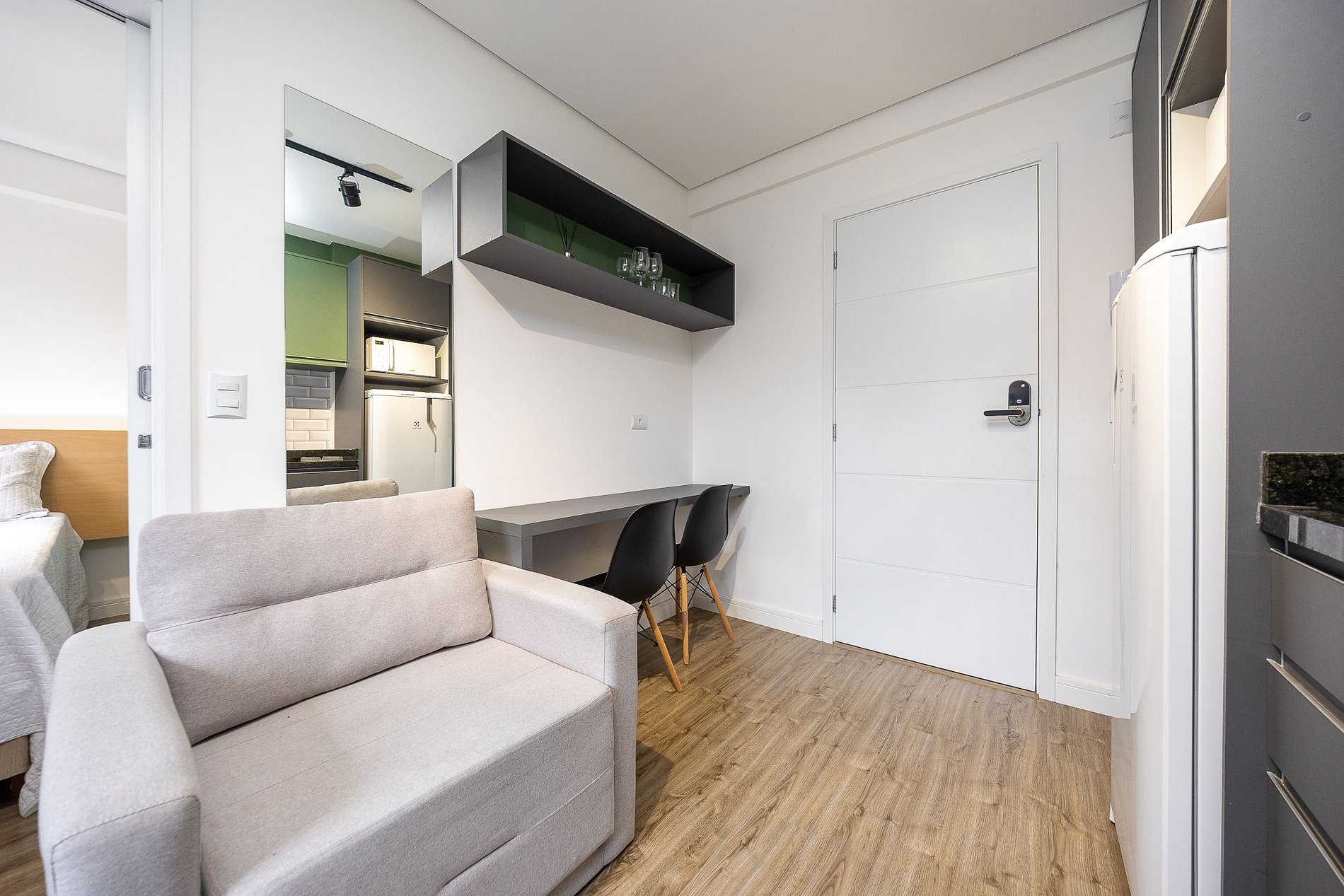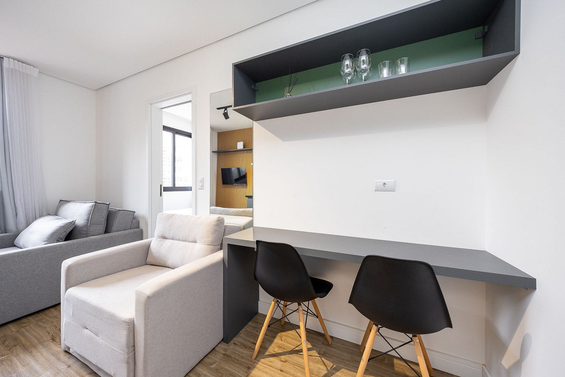 Studio totalmente mobiliado rua Doutor Faivre 1044, no 3º andar, em excelente localização no centro de Curitiba/PR. Finamente decorado, com aproximadamente 30m², conta com: