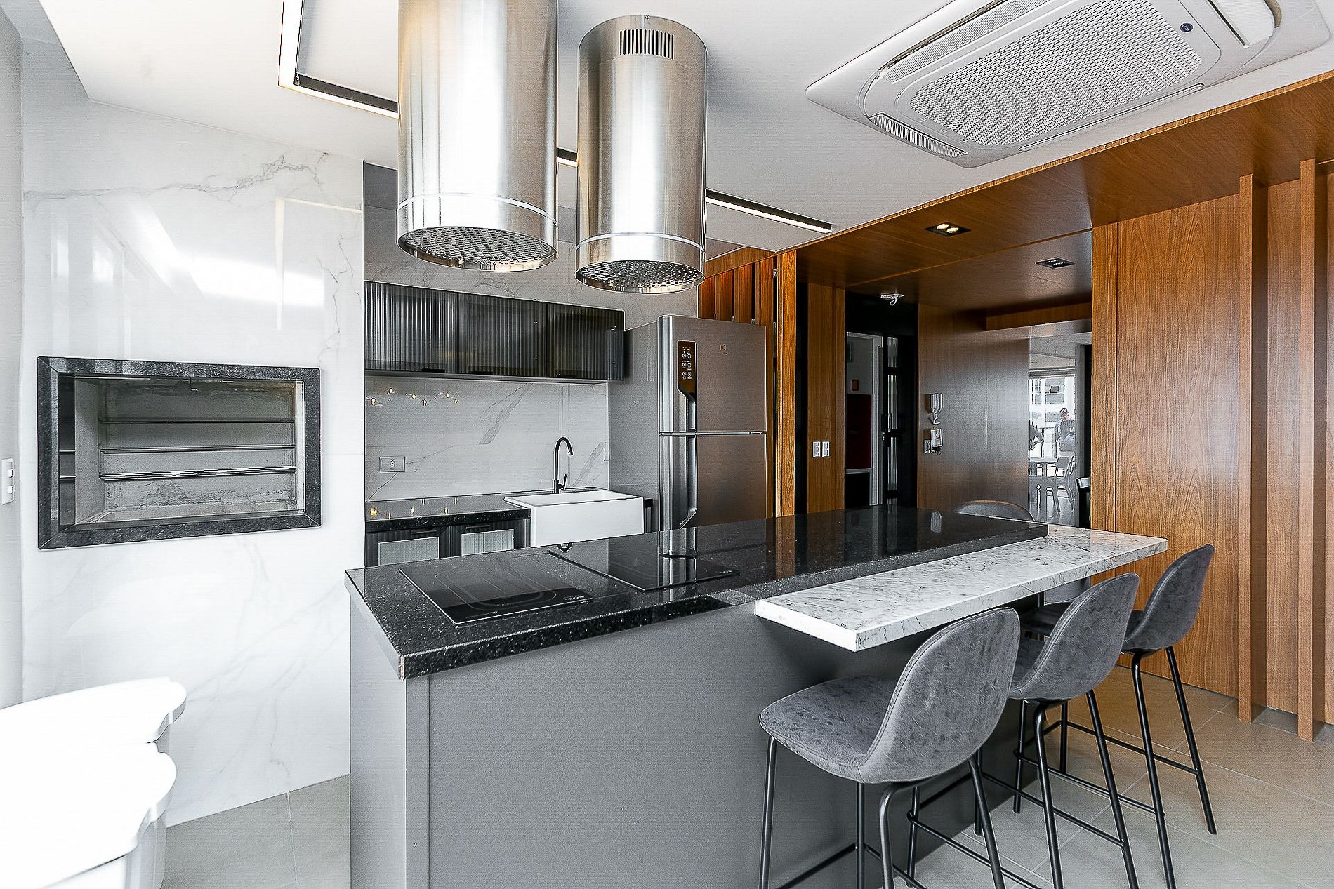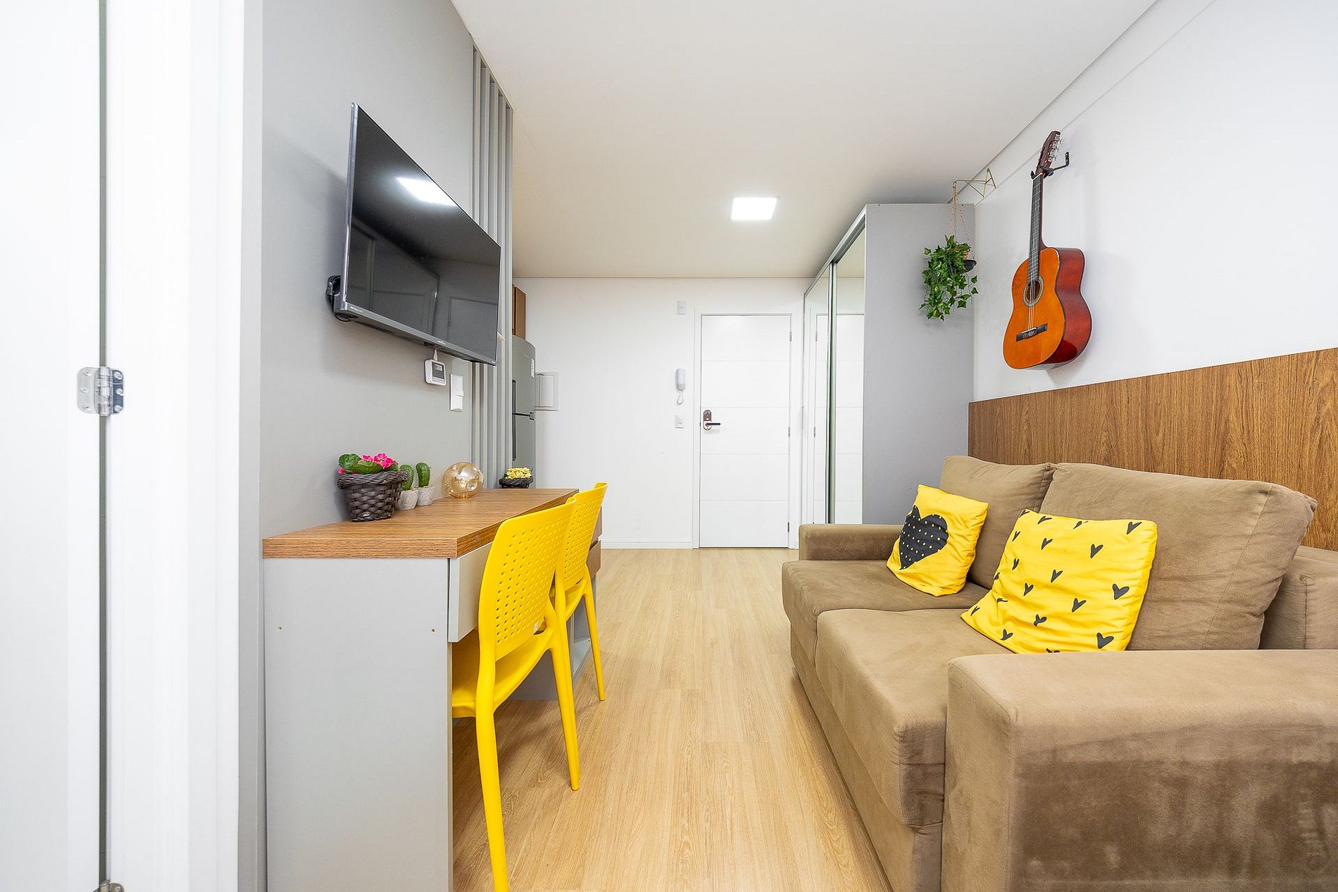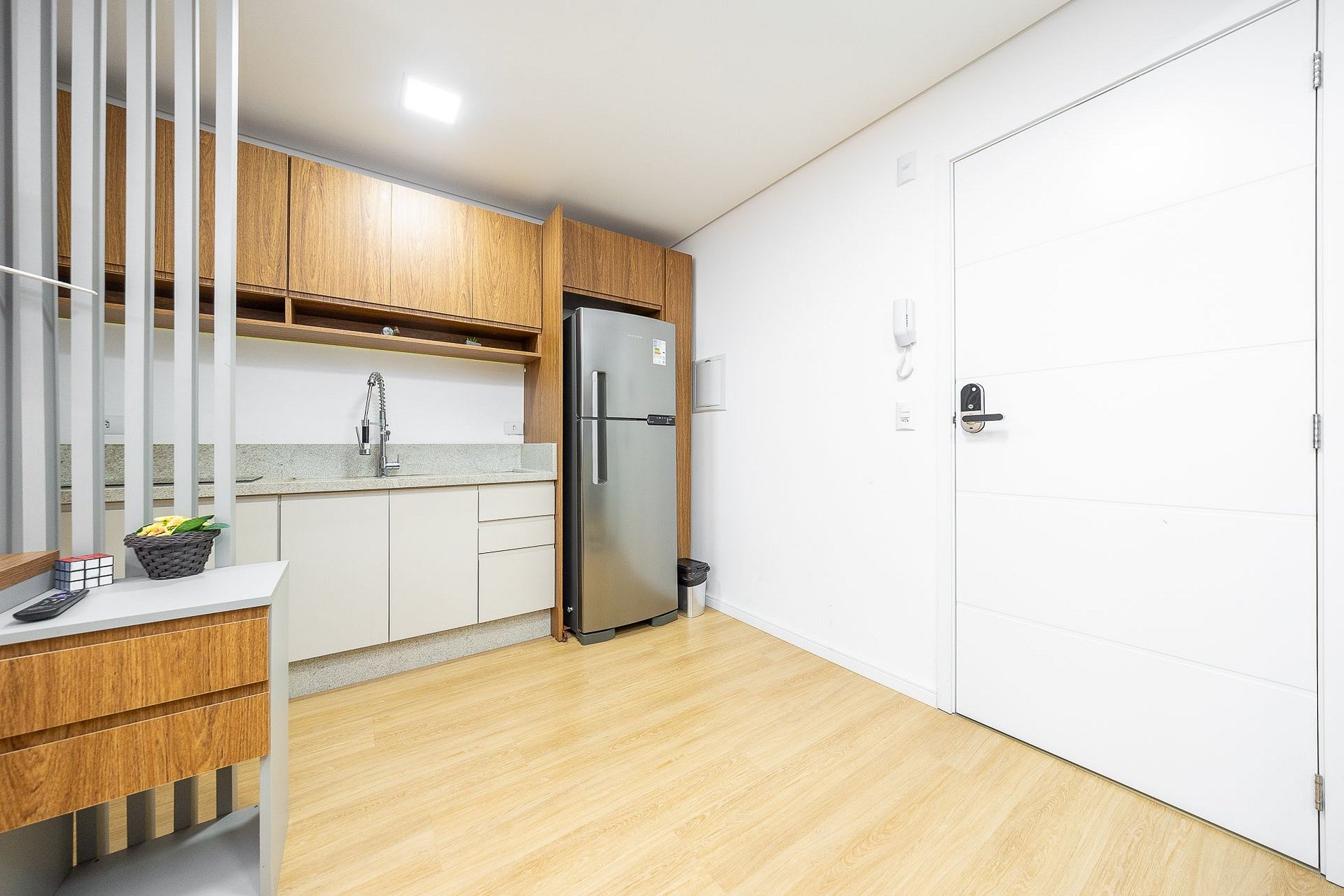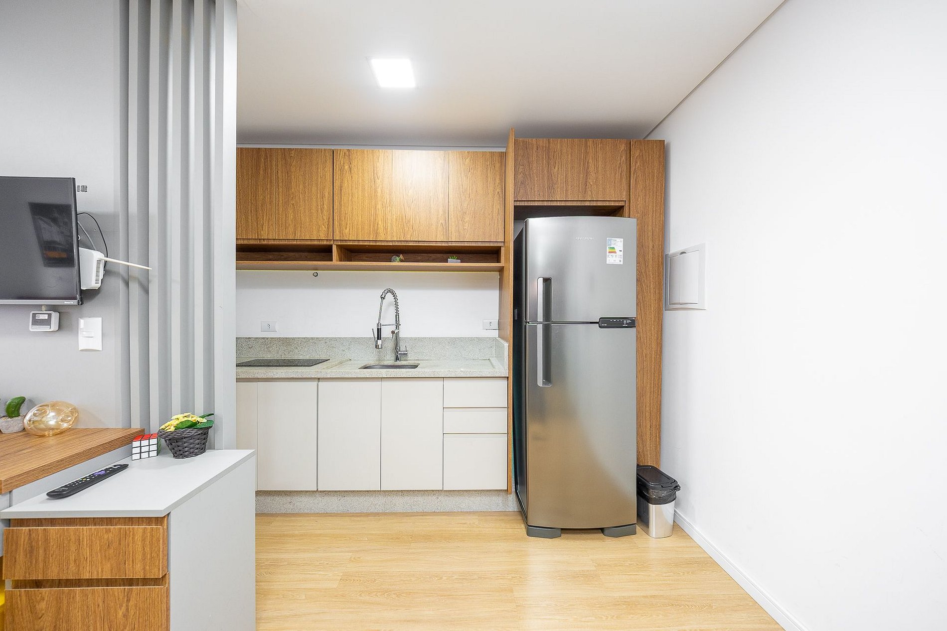 Wi-Fi incluído, Aquecimento central, Móveis sob medida, Cama box casal, Smart TV, Cadeiras, Geladeira duplex, Fogão de indução, ,Jogo de panelas, Talheres, Jogo de facas,Louças, Utensílios para cozinha e ar condicionado.