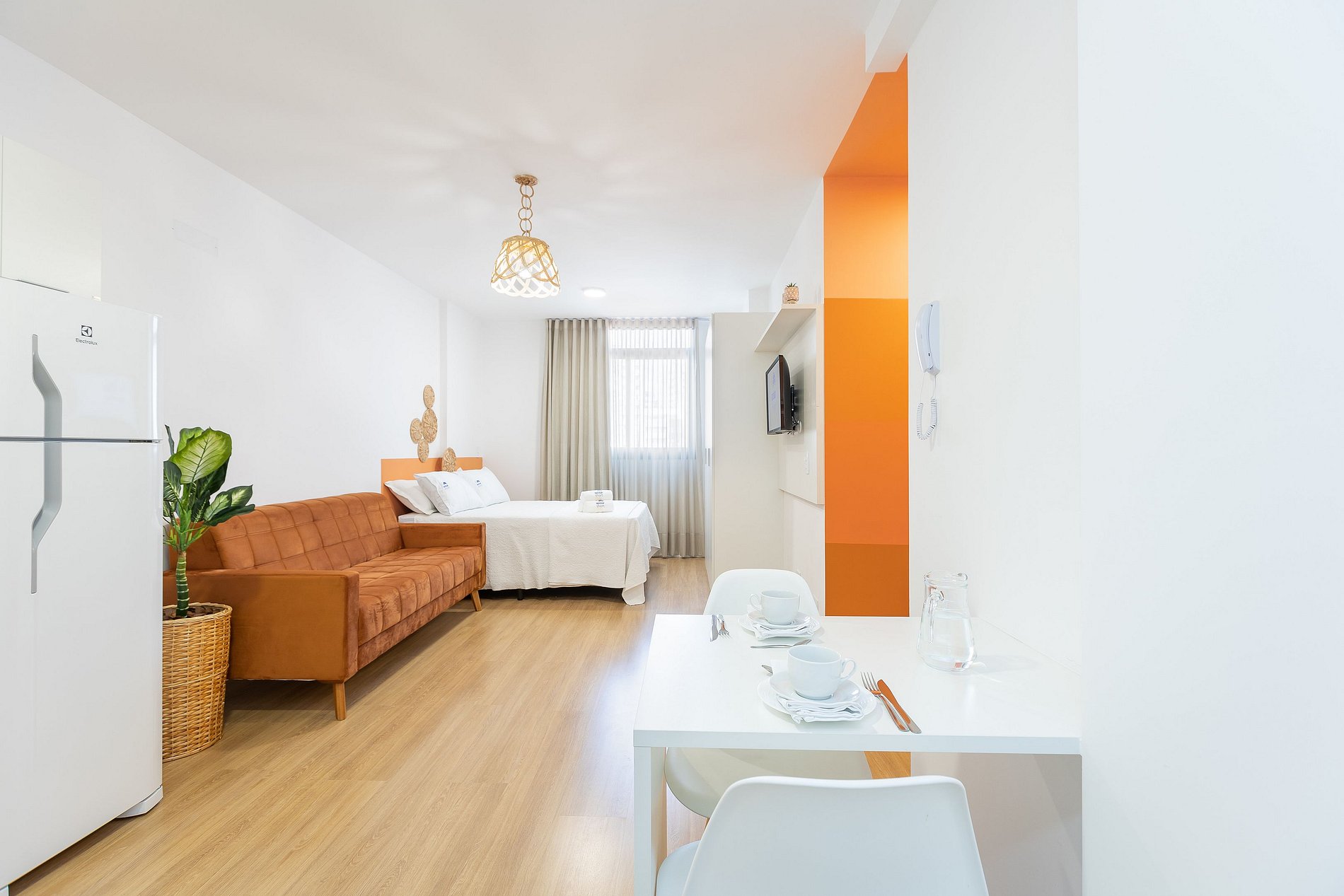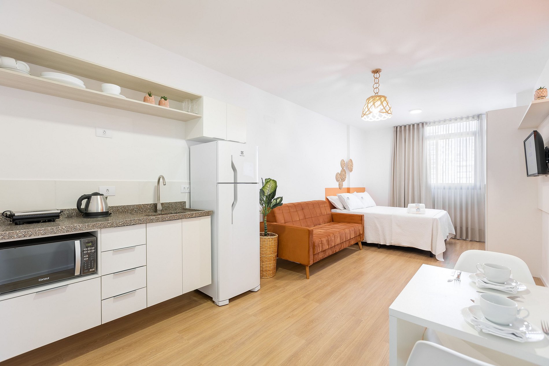 Studio totalmente mobiliado, no 8º andar, em excelente localização no centro de Curitiba/PR. Finamente decorado, colorido e aconchegante. Com aproximadamente 30m², conta com: