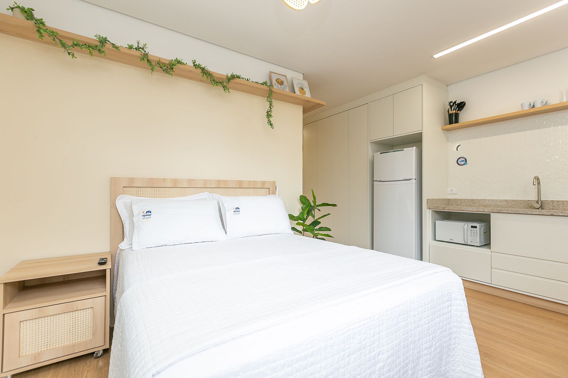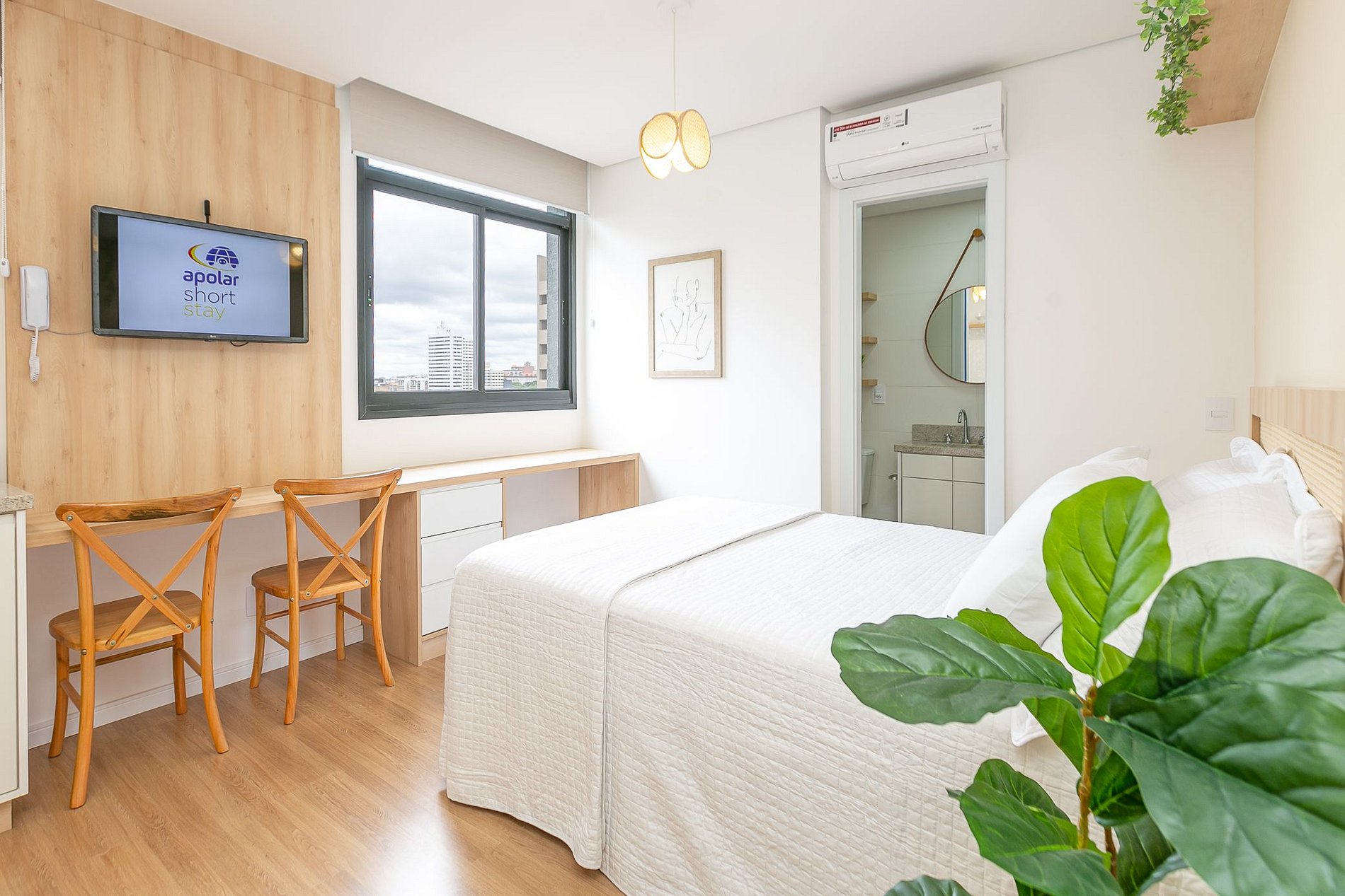 Studio totalmente mobiliado, no 11º andar, em excelente localização no centro de Curitiba/PR. Finamente decorado, com tema inspirado no Aeroporto de Curitiba. Com aproximadamente 30m², conta com:
