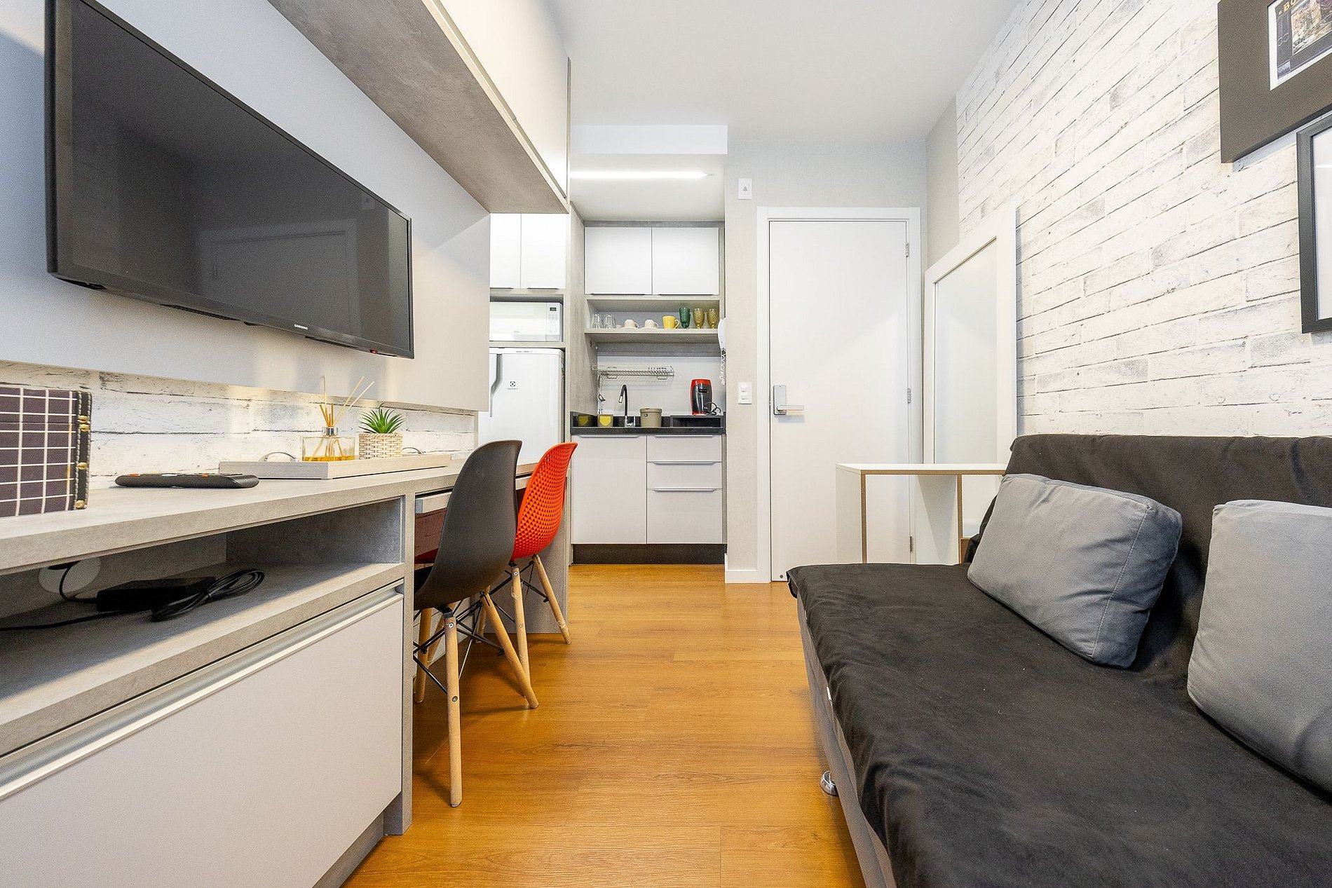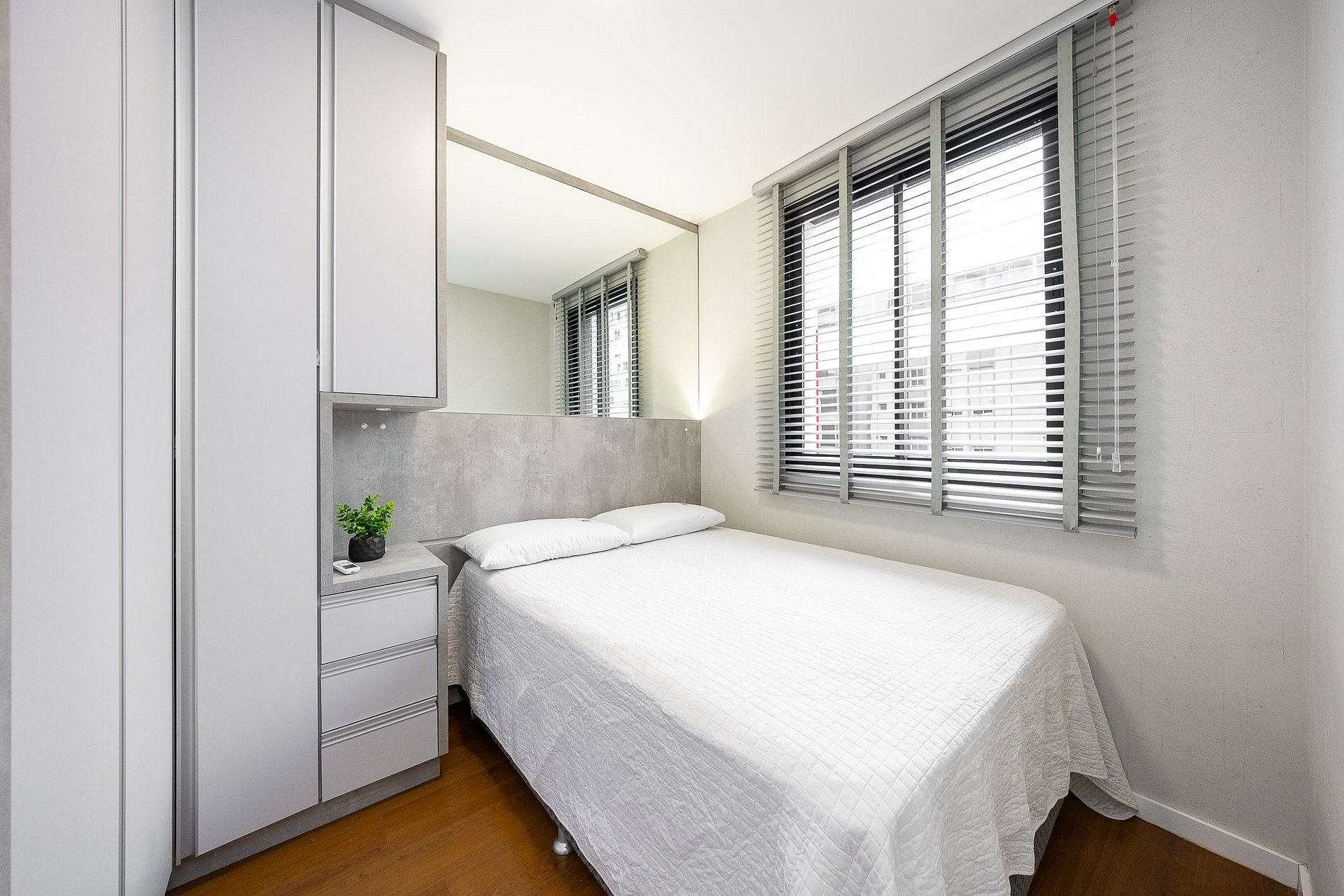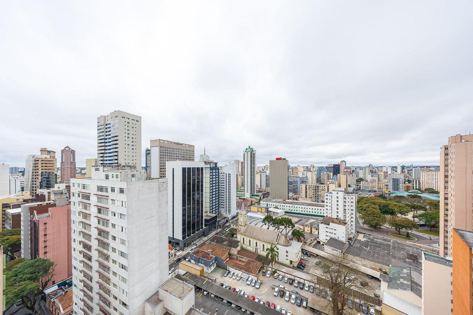Studio 1 quarto, totalmente mobiliado, no 6º andar, em excelente localização no Centro, em Curitiba/PR. Finamente decorado, com aproximadamente xxm², conta com: