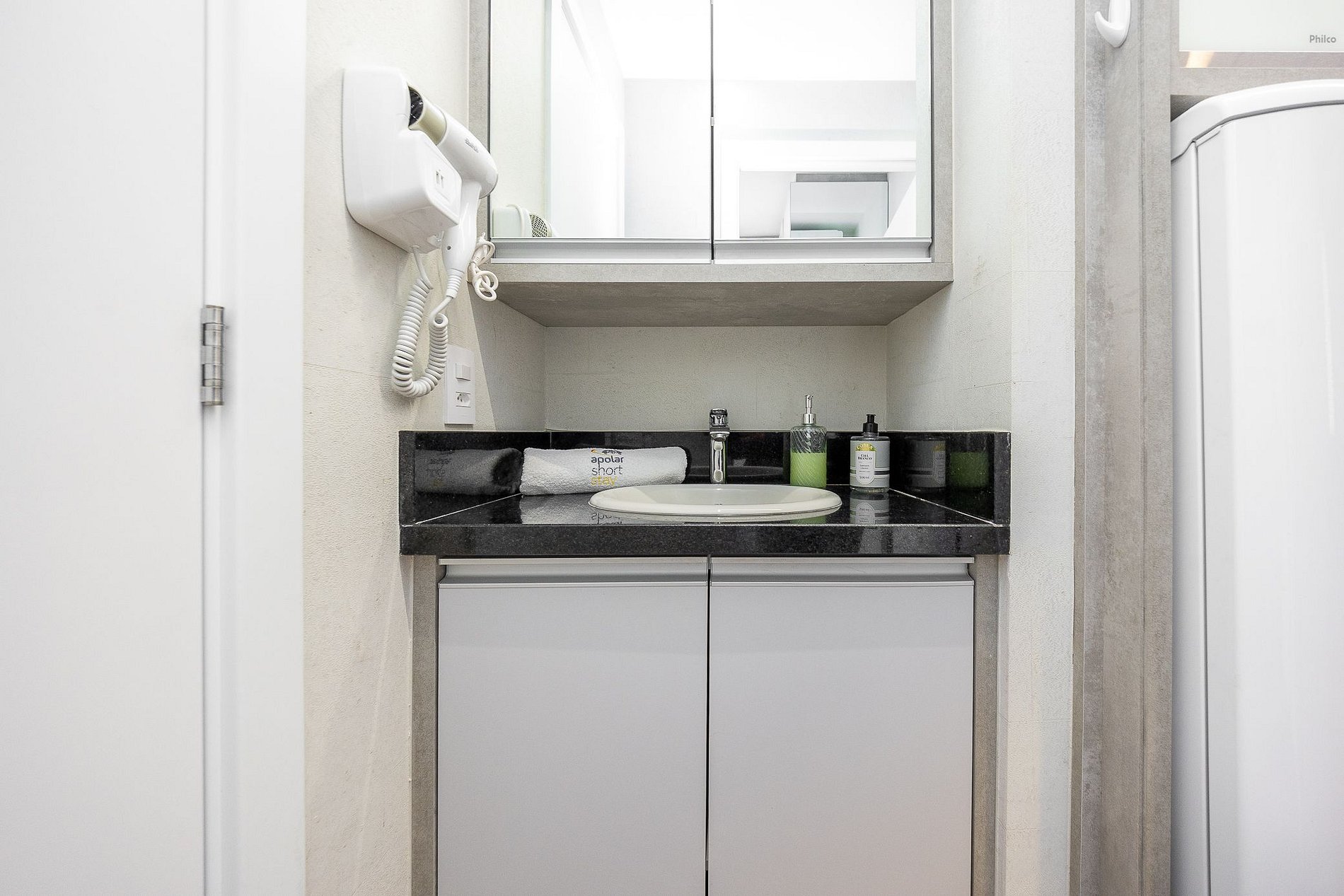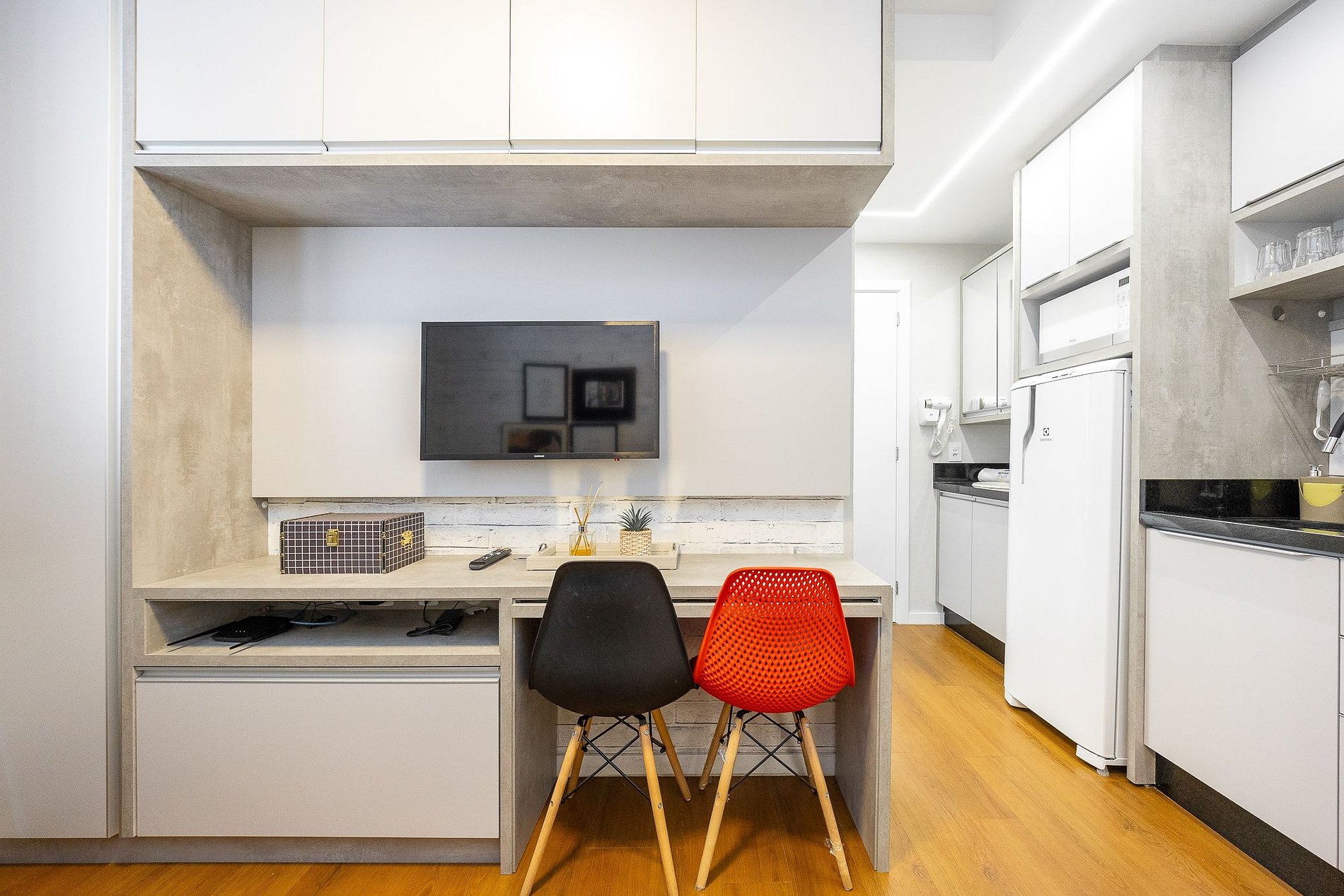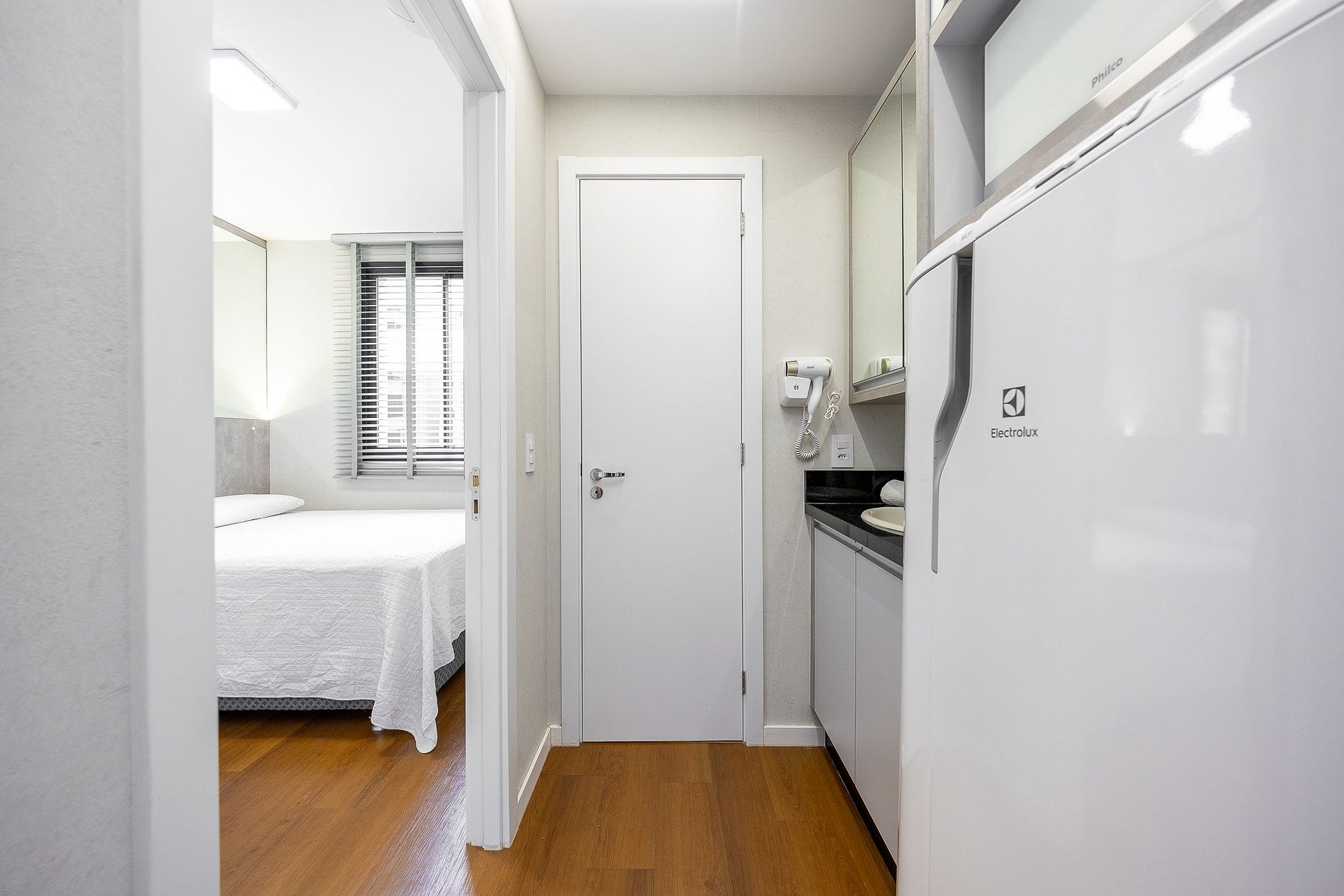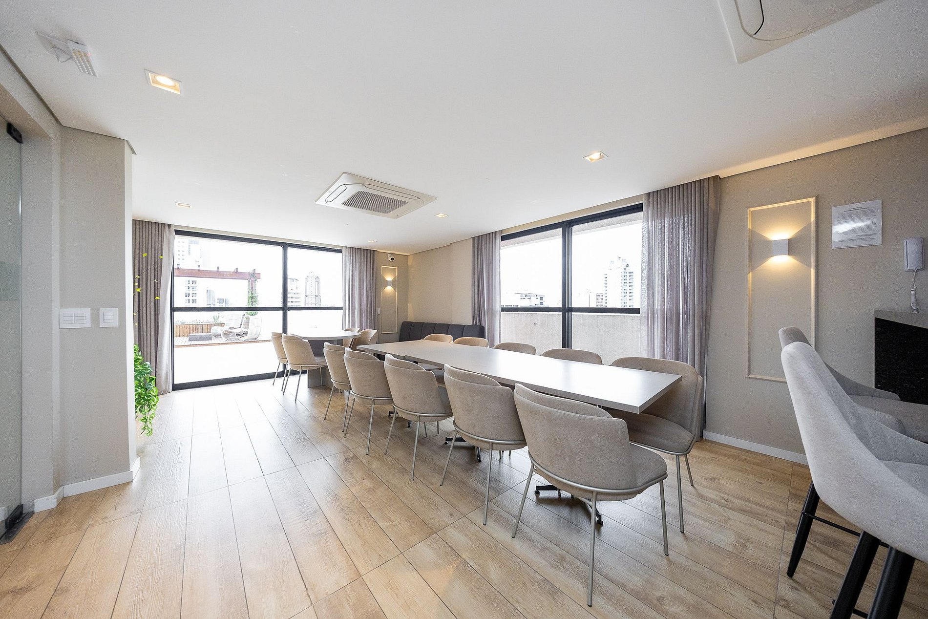 Studio 1 quarto, totalmente mobiliado, no 6º andar, em excelente localização no Centro, em Curitiba/PR. Finamente decorado, com aproximadamente xxm², conta com: