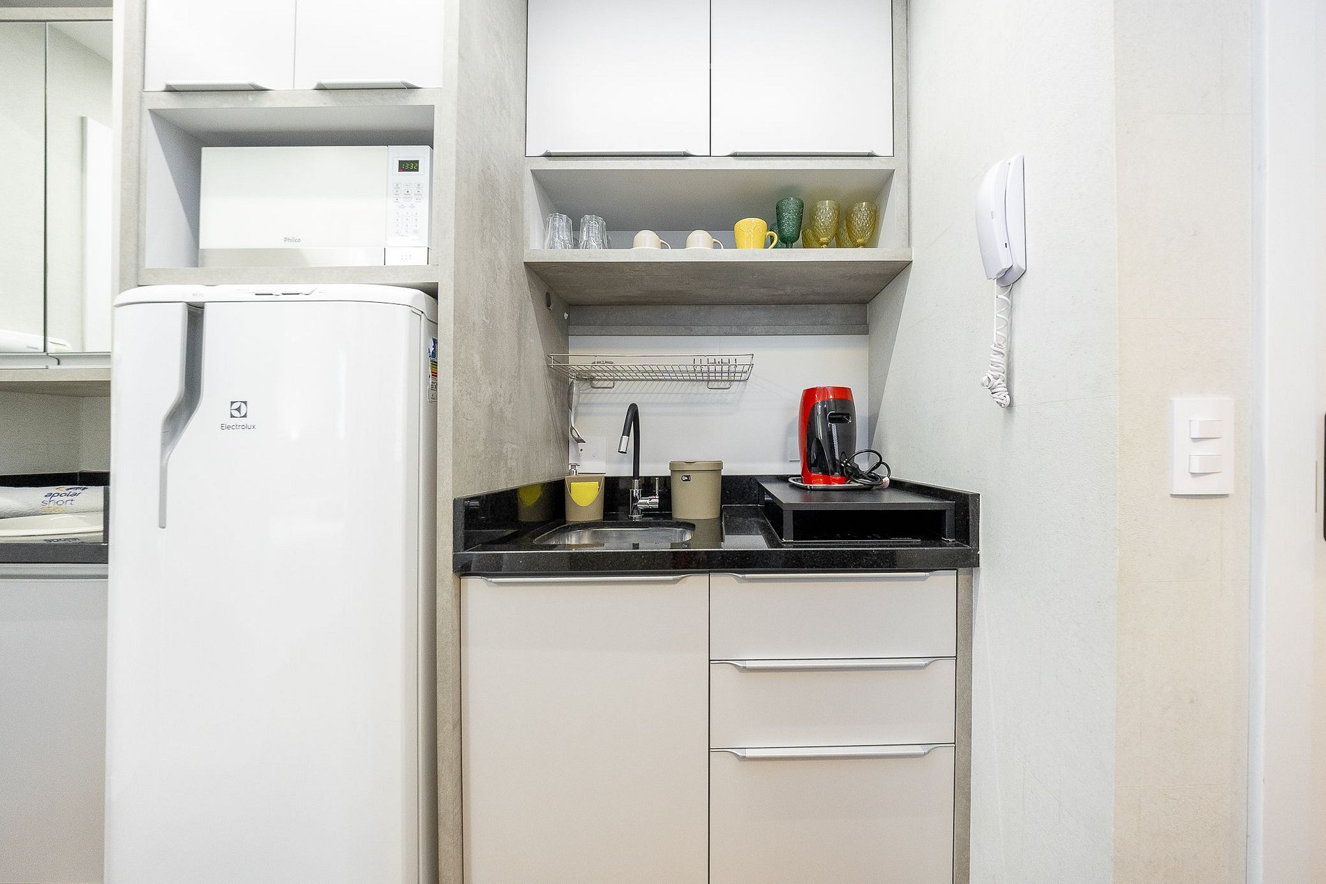 1 quarto Cozinha completa, Lavanderia no prédio, academia e demais áreas comuns.