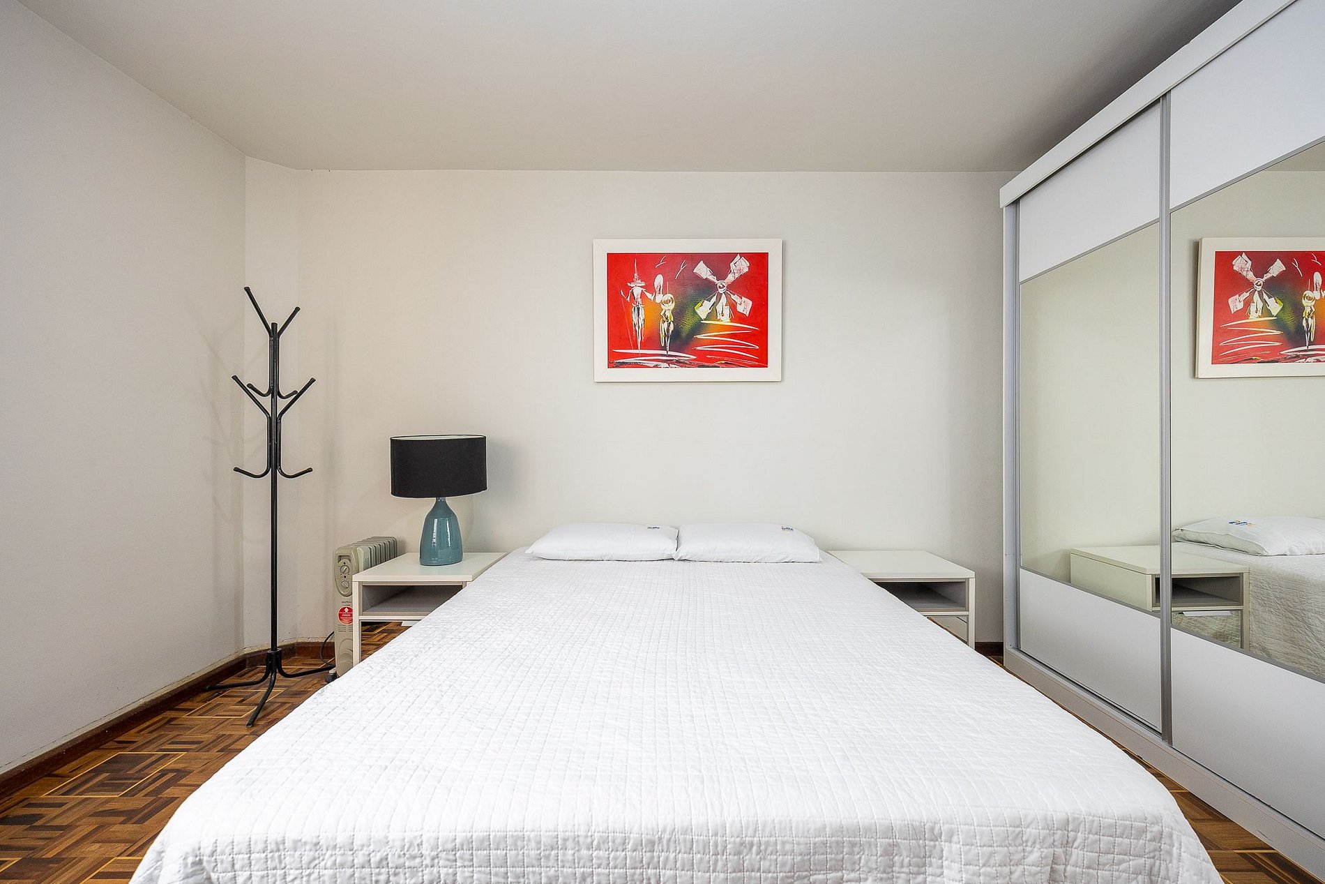2 quartos com camas de Casal e roupeiro.